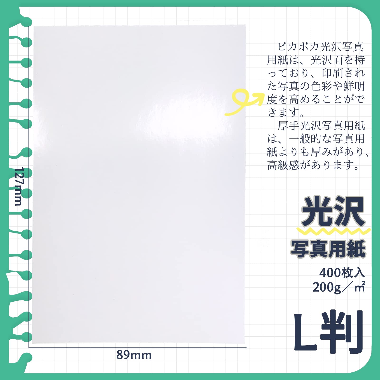ピカポカ 写真用紙 光沢 l判 400枚 厚手 インクジェット 写真プリント用紙 200GSM