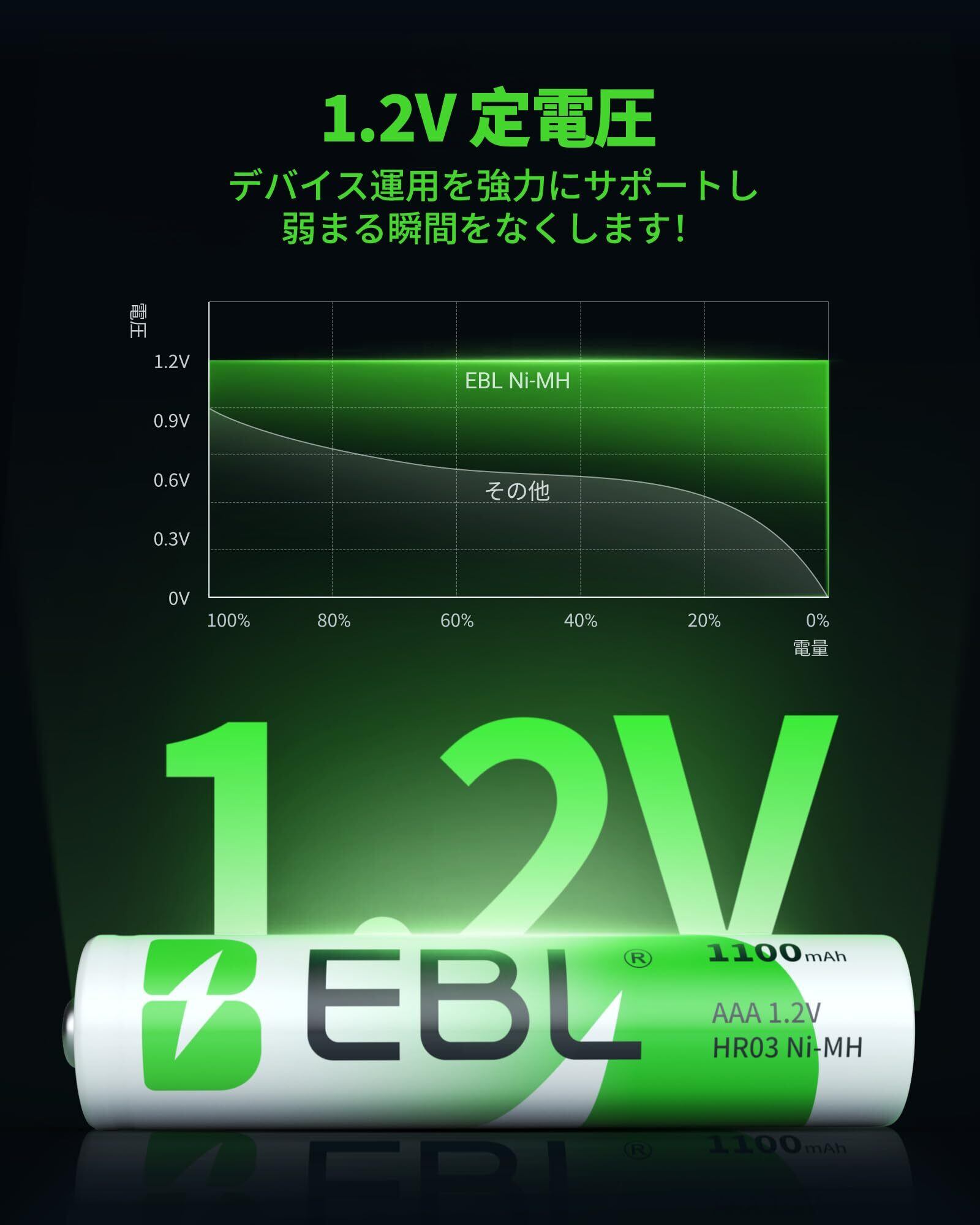 EBL 単4充電池 充電式 ニッケル水素充電池 8本入り 高容量充電池 1100mAhで長持ち 約1200回使用可能 単四充電池 AAA充電池8本パック 防災電池