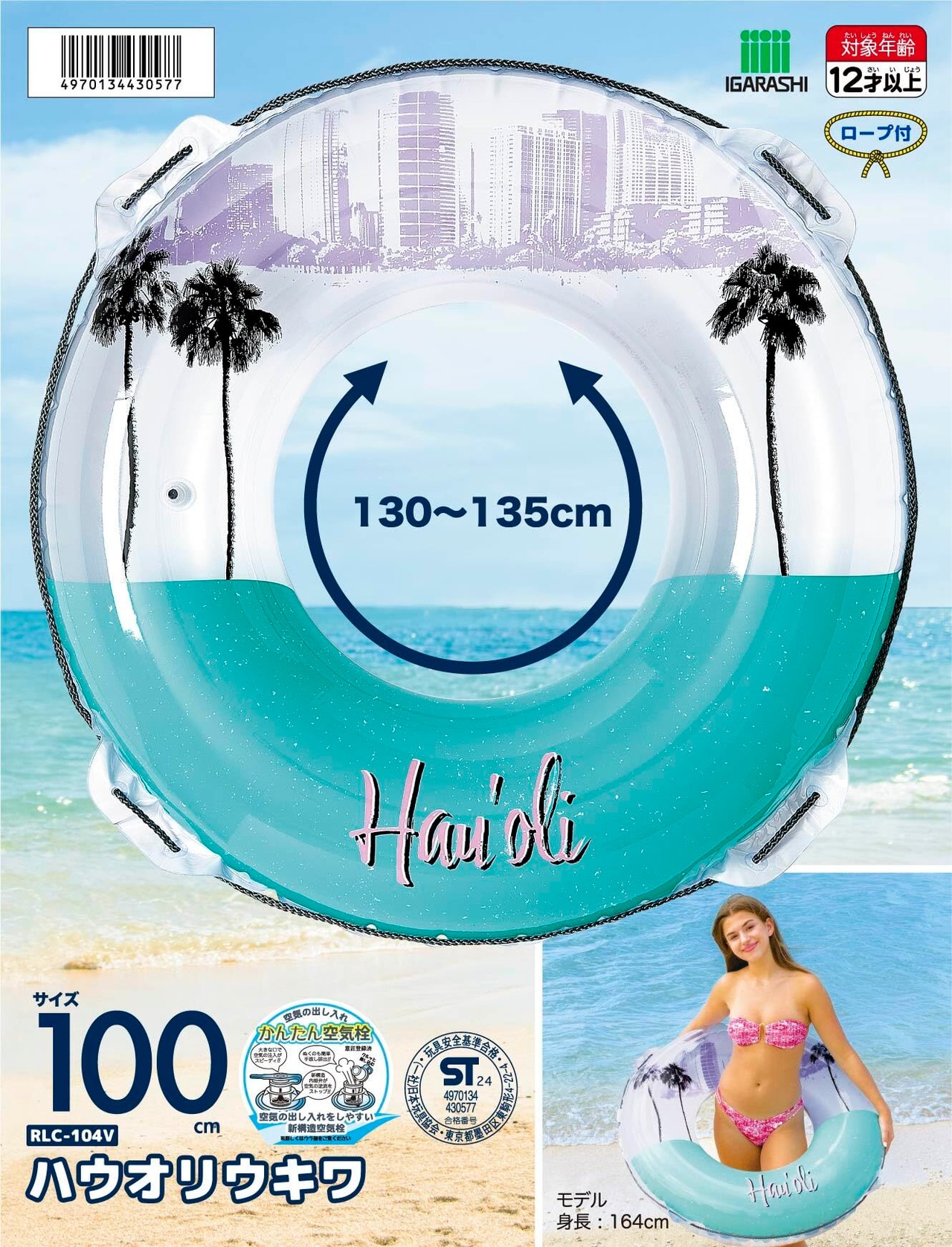 イガラシ 100cm浮き輪 ハウオリウキワ ロープ付き RLC-104V