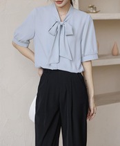 【在庫処分】[Lalapala] ブラウス レディース 半袖 リボン シャツ ボウタイブラウス トップス 夏 ゆったり 大きいサイズ きれいめ 爽やか 無地 エレガント おしゃれ 着回し 着痩せ 体型カバー オフィス お出かけ デート 通勤 | nico3588