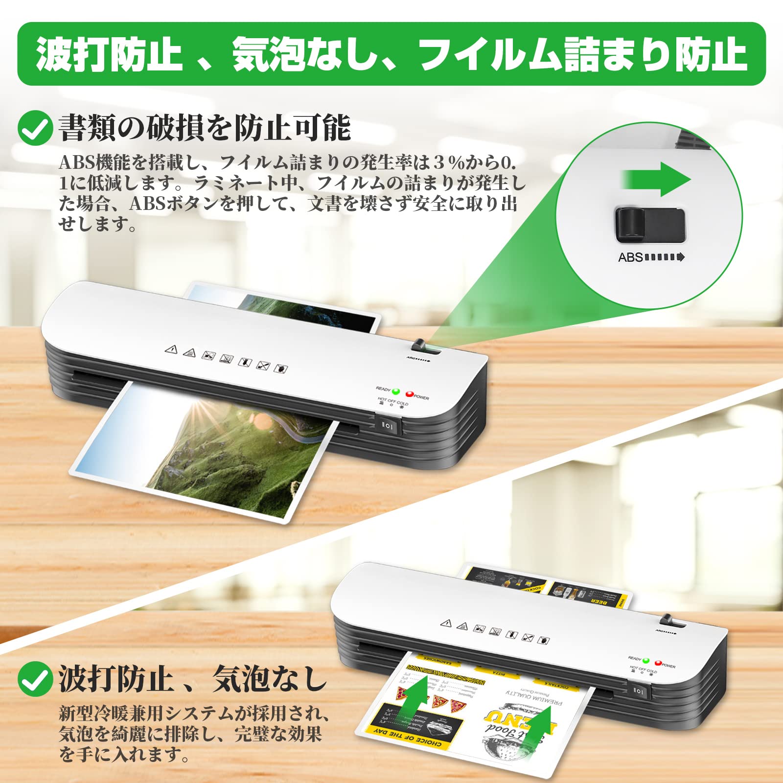 ラミネーター ラミネート 機械 ラミネーター A4 軽量 静か 波打ち防止 気泡なしラミネートフィルム 9枚付き コンパクト 気泡なし ABS機能 2分間ウォームアップ 冷/熱モード付き 連続作業可能 【PSE認証済み】 オフィス用品 業務用 家庭用 【日本語説明書】母の日プレゼント