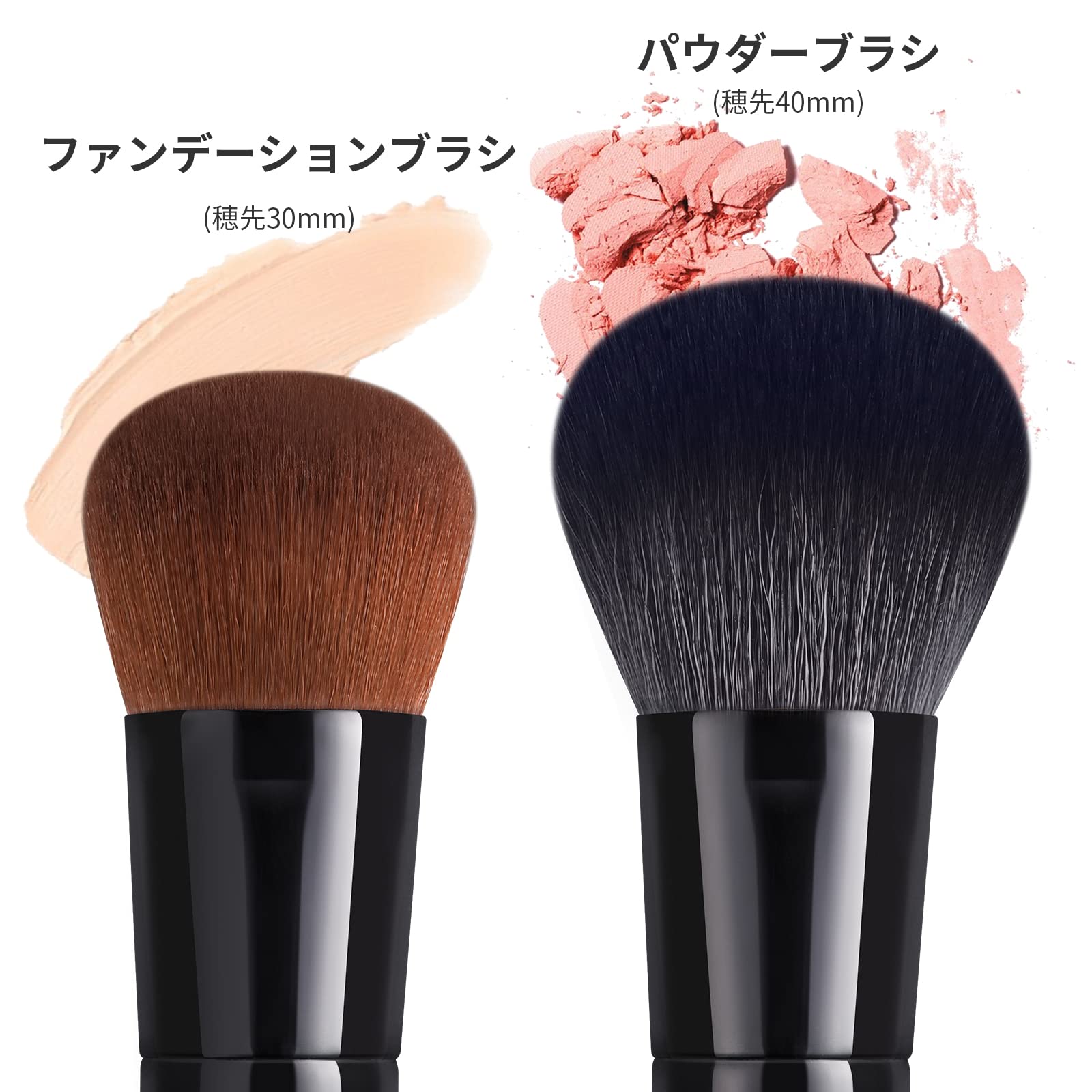 【カブキフェイスブラシ2本セット】お肌に優しい柔らかな毛質、ファンデーションブラシ+パウダーブラシ2本セット。コンパクトなサイズなので旅行用はもちろん、外で化粧直しをするときの持ち運び用にもぴったりです。いつものメイクを、フェイスパウダーブラシでちょこっと格上げましょう!