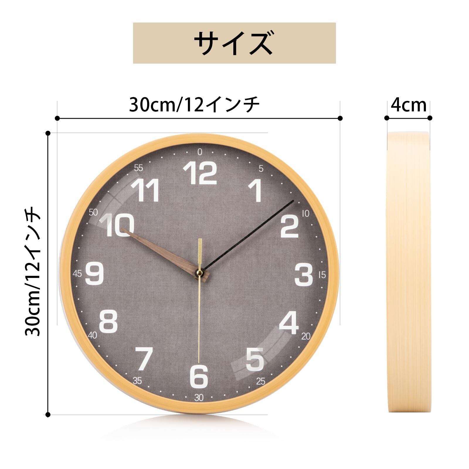 【新着商品】AUTVIVID 掛け時計 電波時計 静音 木目調 連続秒針 壁掛け 直径30cm ナチュラル おしゃれ インテリア 大数字 見やすい 自宅 寝室 部屋飾り 贈り物 (グレー) | nico3588