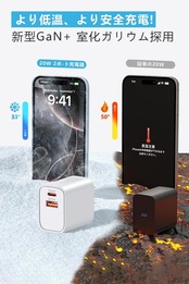 【20W PD高速充電器】:USB-C PD 3.0ポートを搭載したこの充電器は、最大20Wの出力を実現。iPhone 16/15/14/13/12シリーズをはじめ、さまざまなデバイスに超高速充電を提供します。従来の5W充電器よりも3倍速く、電池残量に不安を感じることなく、忙しい日常をサポートして、時間を有効に活用しましょう。