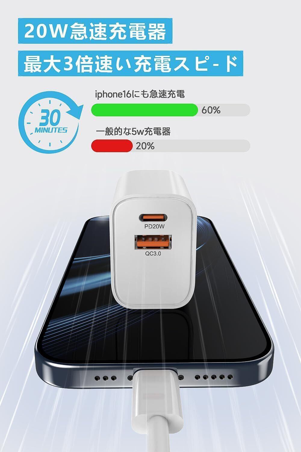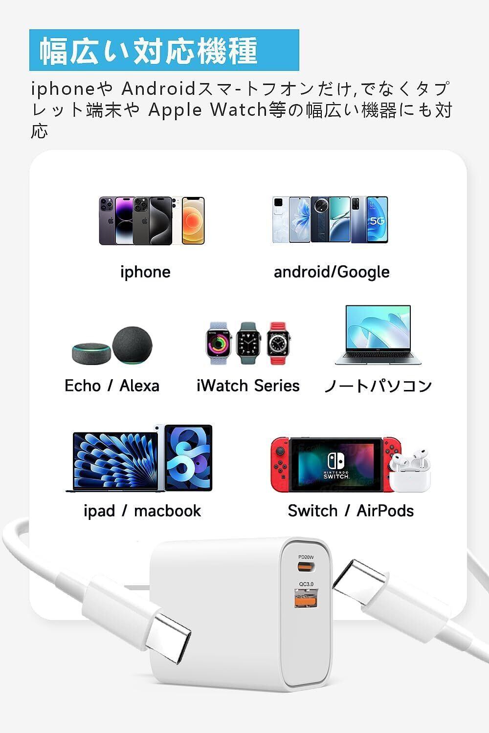 【新着商品】iphone 充電器 type-c PD 20W 2ポート タイプc 充電器 [正規MFi認証品/PSE認証済み] USB C-C 充電ケーブル 2M付き usb-c コンセント 電源アダプター タイプC アイフォン 充電器 iPhone16/15/Pro/max/iPad Pro/AirPods その他USB-C機器対応