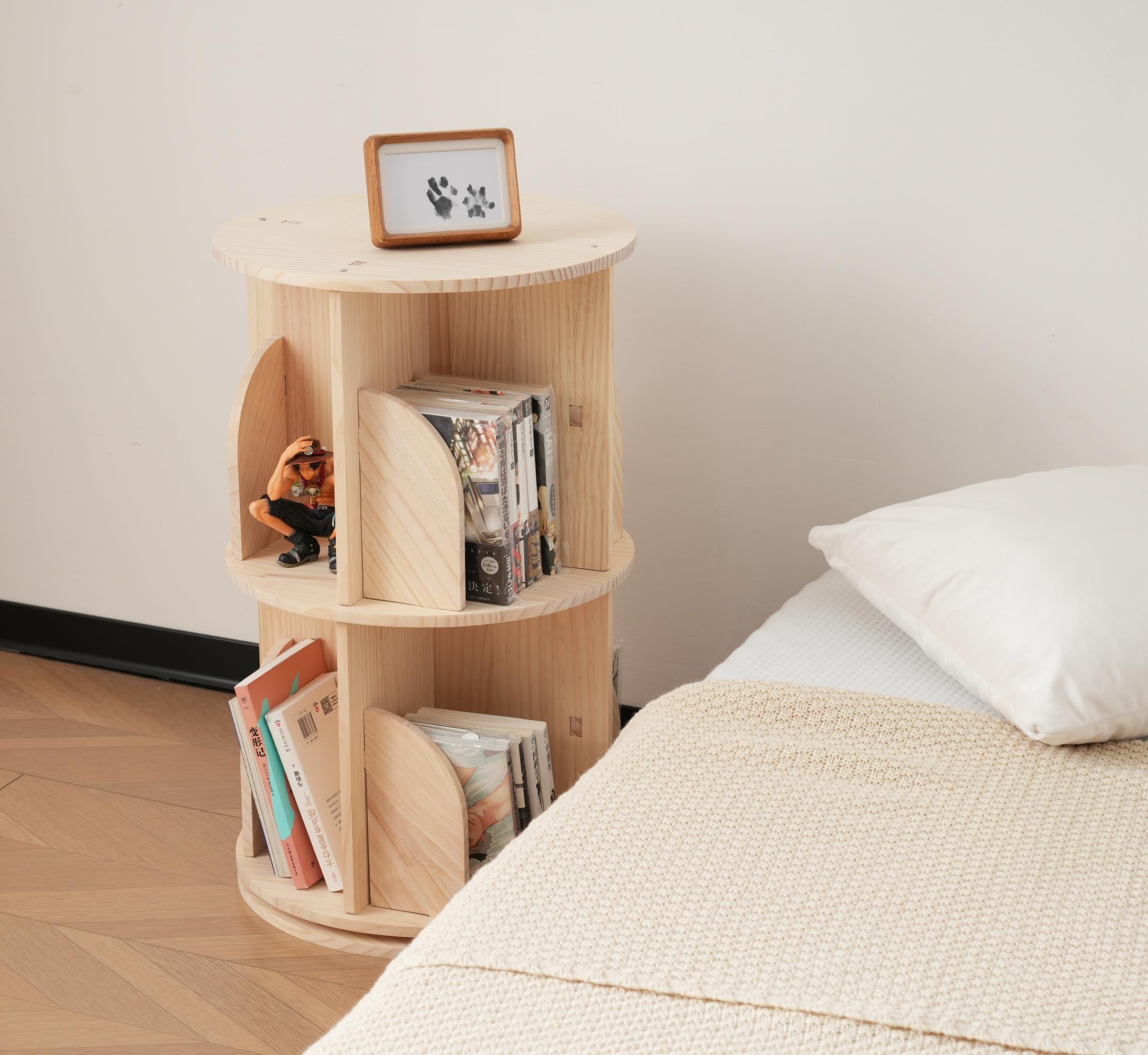 オーエスジェイ(OSJ) 回転式本棚 無垢材 木製 360°回転本棚 2段 コミック収納棚 本棚 リビング 子供部屋 収納棚 回転ラック シンプル 組立簡単