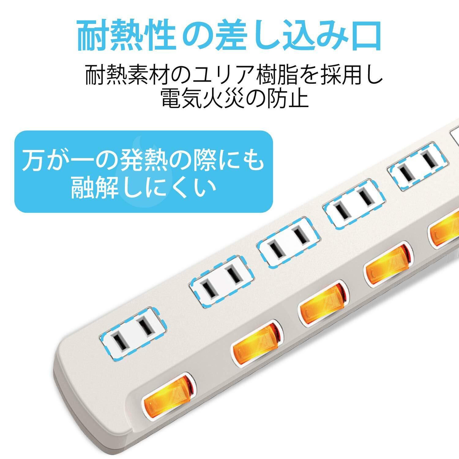 エレコム 電源タップ 6個口 3m 雷ガード 個別スイッチ ほこりシャッター付 耐熱 PSE技術基準適合 ホワイト T-K6A-2630WH