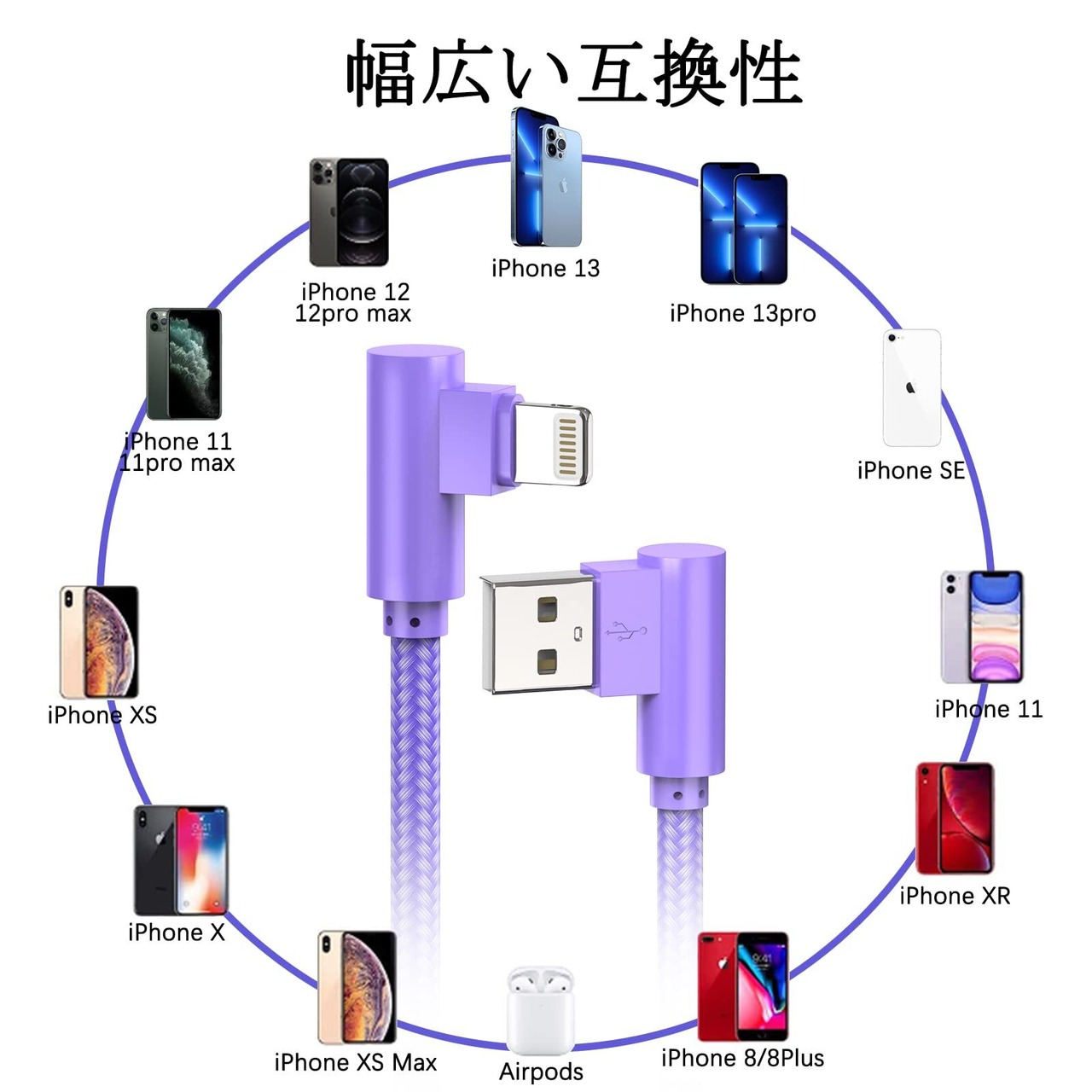 【互換性高いライトニングケーブル 1m】:ほとんどライトニングのポートを持つデバイスに適用。 iPhone 13,13Pro,13Pro Max,12, XS,iPhone XS MAX, iPhone XR,iPhone X, iPhone 8, 8 Plus, iPhone 7, 7 Plus, iPhone 5 ,5C ,5S, iPhone 6,iPhone 6s, 6 Plus, iPhone SE, iPad Air, Mini , iPod ケーブルで行えます。最新の iOS13,14,15 との互換性。