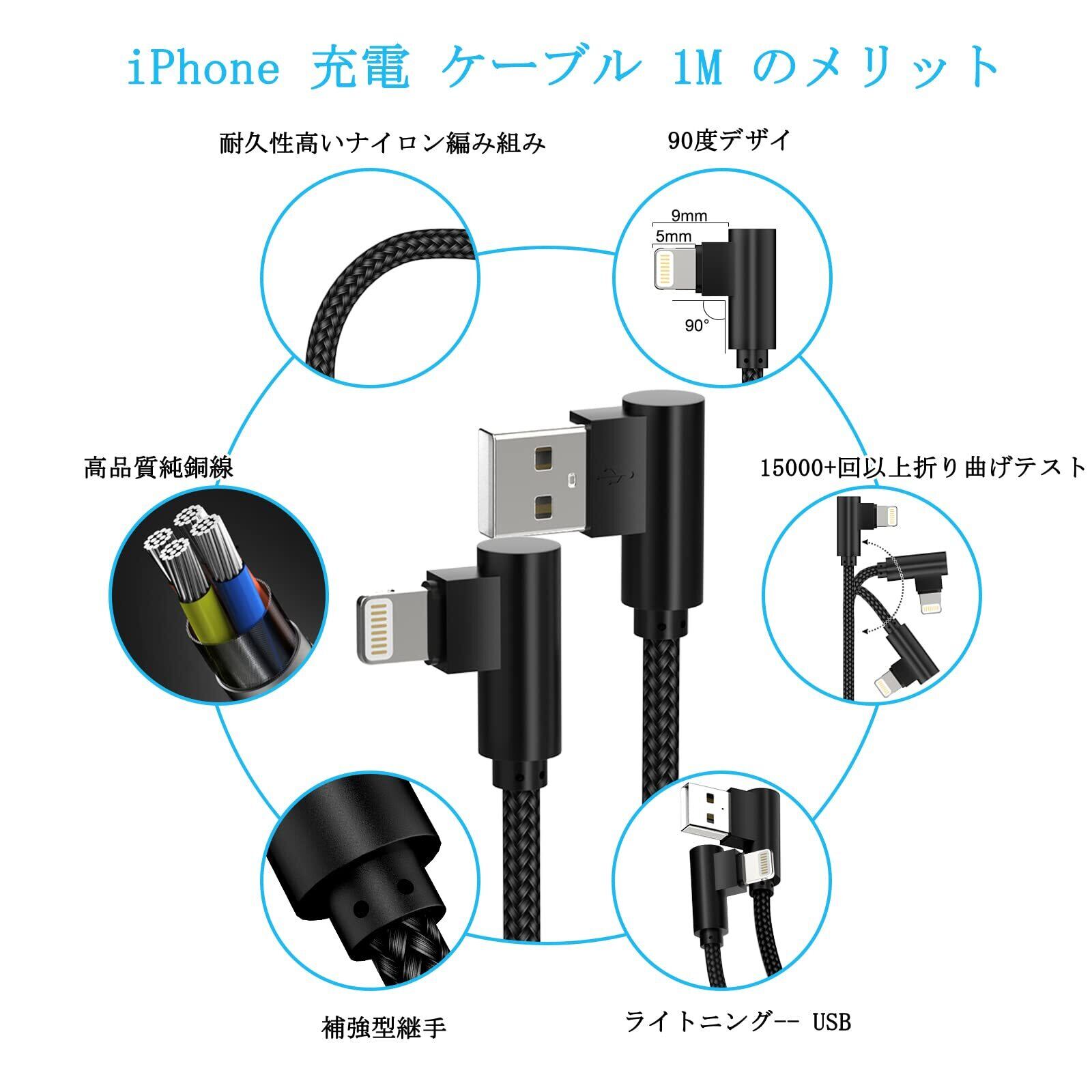 iPhone 充電ケーブル 1m l字 3本セット iphone 充電ケーブル ライトニングケーブル 1m あいふおん充電コード 高速 高耐久 iPhone 充電 コード lightning ケーブル 断線防止 急速 転送 充電 ケーブル iPhone 14 13 12 11 XS XS Max XR X 8 8Plus 7 7 Plus 6s 6s Plus iPad 対応 (3色)
