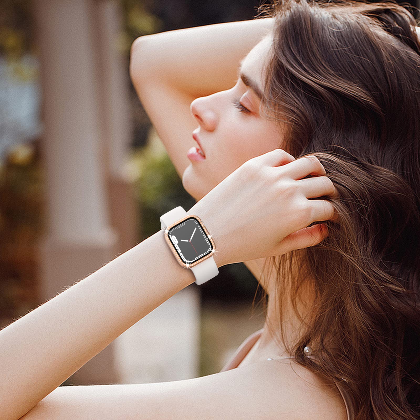 ご注意:運動時に、ケースとスクリーンの隙間に水や汗が入り込むことがあり、タッチ感度に影響しますので、シャワーや運動の前にアップルウォッチカバーをお取り外すようにしてください