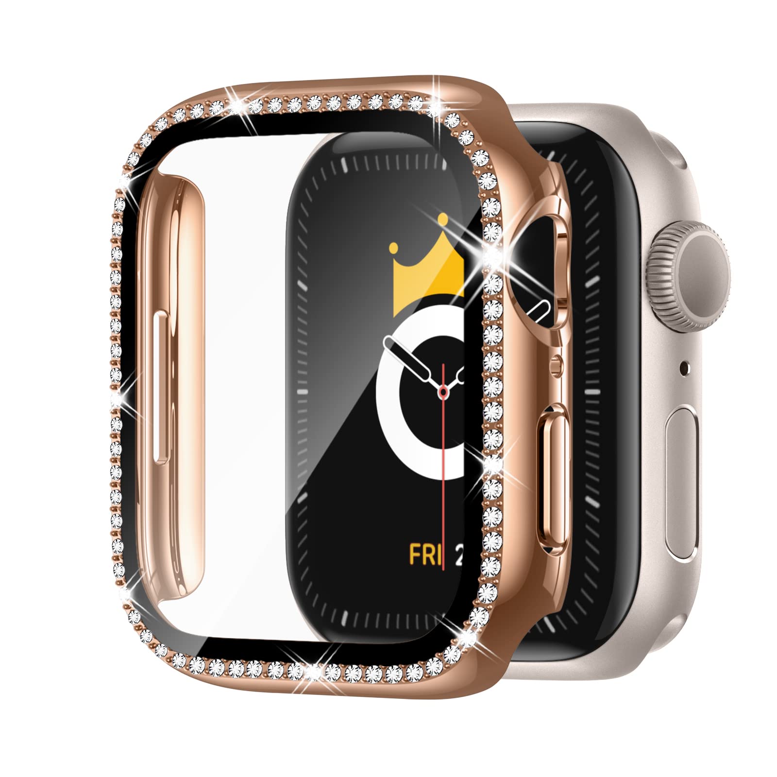 Adepoy コンパチブル Apple Watch ケース 42mm iWatchケース キラキラ 保護フィルム付き クリスタルダイヤ付き アップルウォッチカバー 女性専用 全面保護ケース(42mm Series 3/2/1 ローズゴールド)