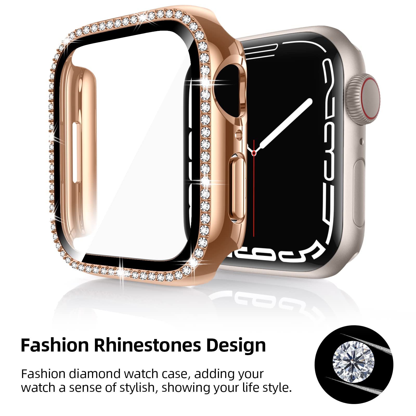 シングルダイヤデザインでもっと輝き:キラキラストーンが特殊接着剤でケースのフレームにちりばめられて、取りにくいです。ジュエリーのような華やかで高級感であり、周りから可愛いと評判させるデザインです!Appleウォッチを新しいスタイリッシュな外観にしよう