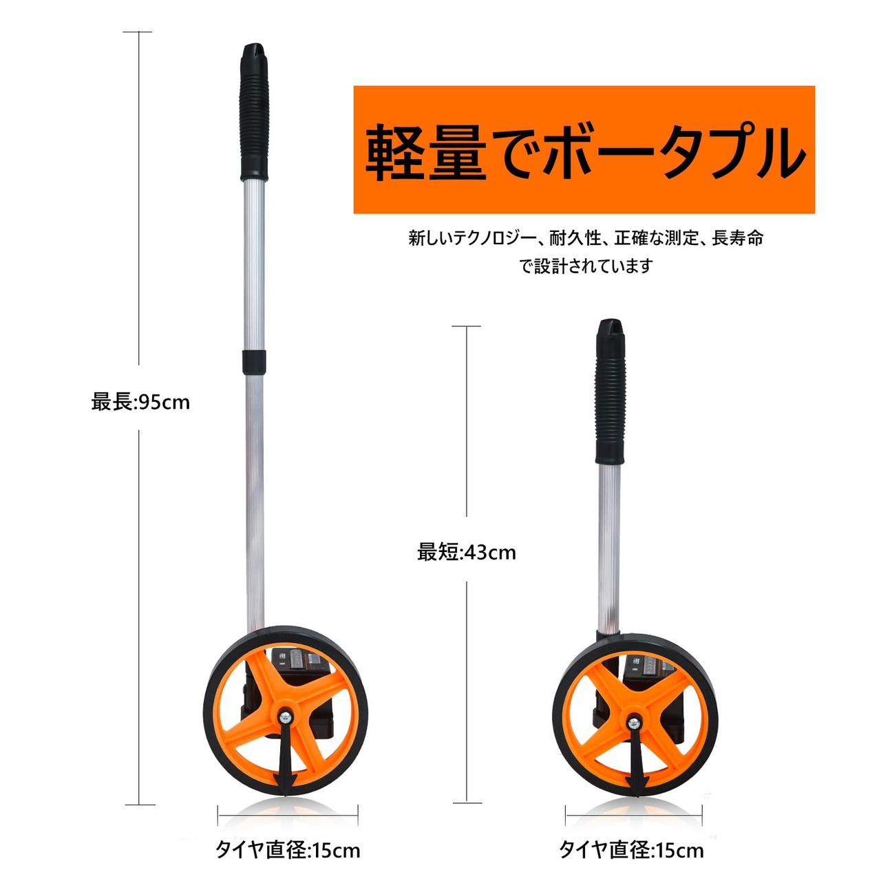 Zozen ウォーキングメジャー 距離測定器 ロードメジャー 6インチ 伸縮する式10cm~9999m 測定 ホイール 測定 ホイール 始点矢 マーク付きメートル法オレンジ色 体育器具 距離 計測 学校 住宅の測量