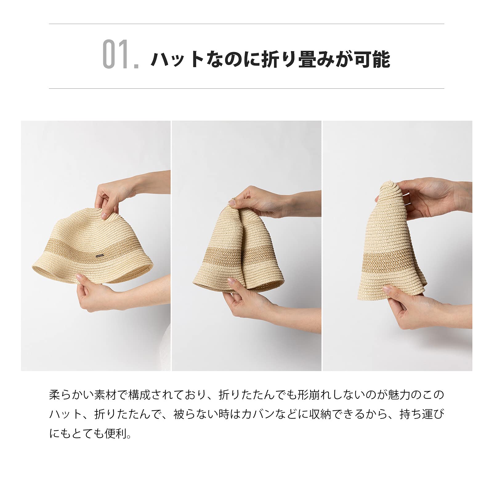 【UVカット】 熱中症対策にも効果を発揮し、紫外線遮蔽率は99%以上!また折りたたむことは出来るので、型崩れを気にせずバックに収納して持ち運べ、旅行の際など特に便利にお使いいただけます。