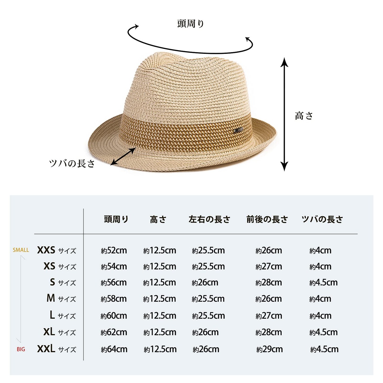 【選ばれるサイズ】 お子様から大人まで、たくさんのサイズが選択でき、自分との一番合うハットが選べます。 また、つばが小ぶりなので、顔映りがよくすっきりとしたシルエットで楽しめるショートブリムハットです!