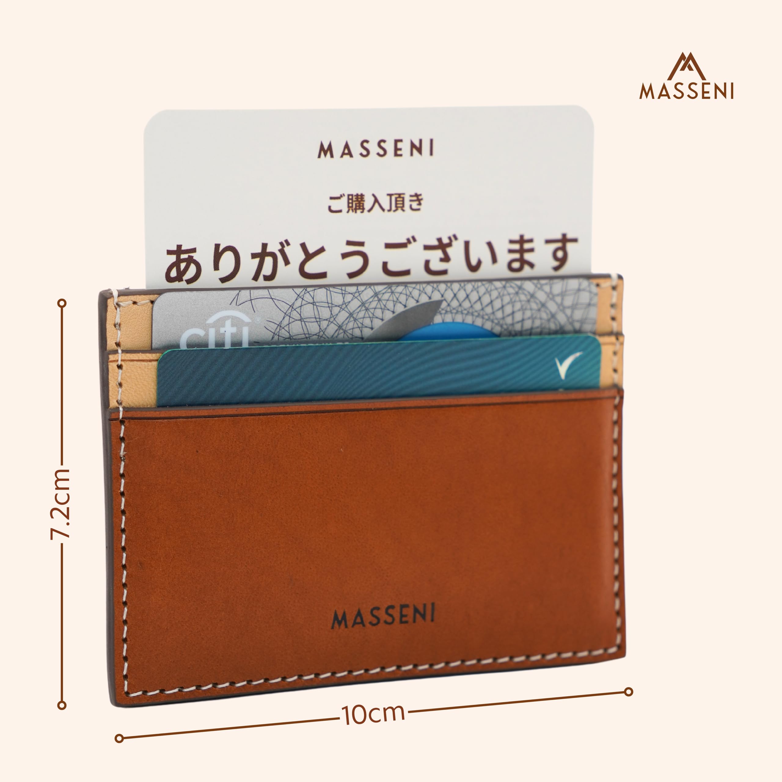 イタリアのベジタブルタンニンレザーと日本人職人から教わった技が融合し、至高のカードホルダーが誕生しました。伝統的なイタリアの革なめし技術で丁寧に仕上げられた高品質な革は、使うほどに味わい深い風合いを増していきます。イタリアベジタブルタンニンレザー協会の証明書付きで、その品質はされています。内側には5つのカードスロットを備え、実用性を兼ね備えています。職人による丁寧なステッチは耐久性と美しさを両立させています。このカードホルダーのカラートーンは、ビジネスからカジュアルまで幅広いシーンで活躍する汎用性を持っています。革本来の自然な風合いを大切にしたシンプルで洗練されたデザインは、長く愛用できる逸品です。