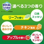 チキン風味で、おいしく歯みがき! 使いやすいジェルタイプです。口臭ハーモナイズド香料で嫌なニオイをいい香りにチェンジして息さわやか。食べられる成分なのですすぎ不要です。犬・猫のどちらにも使えます。
