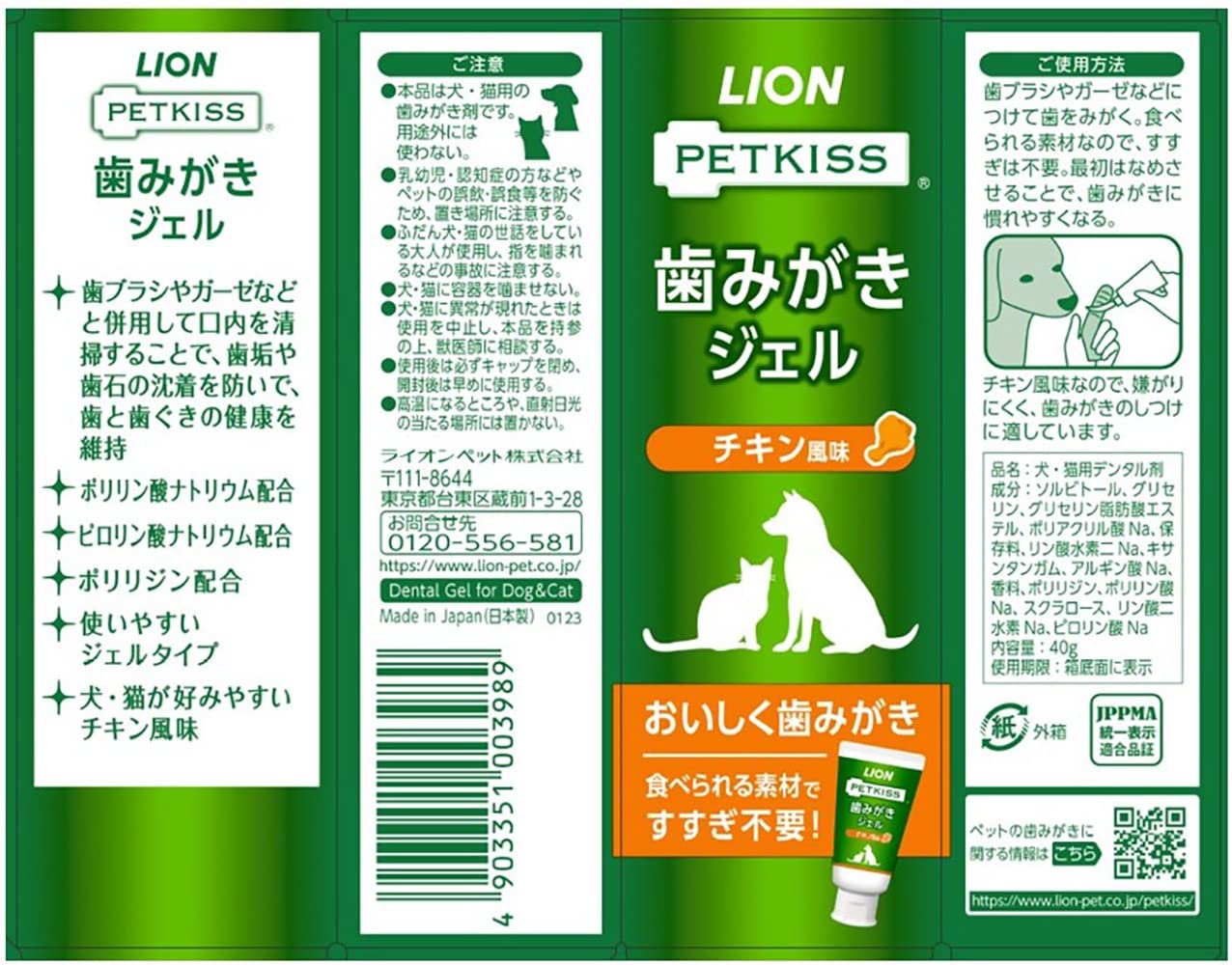ライオン PETKISS 歯みがきジェル チキン風味 ペット用 単品 LIONPET