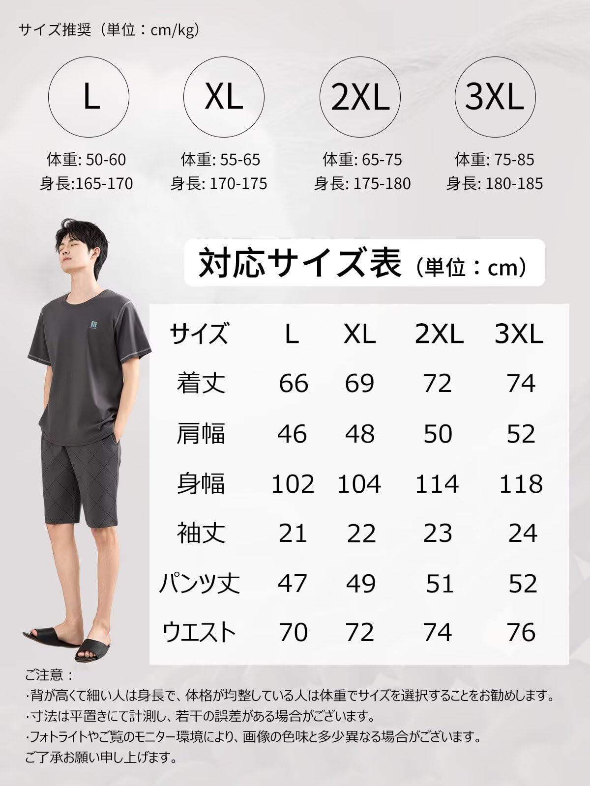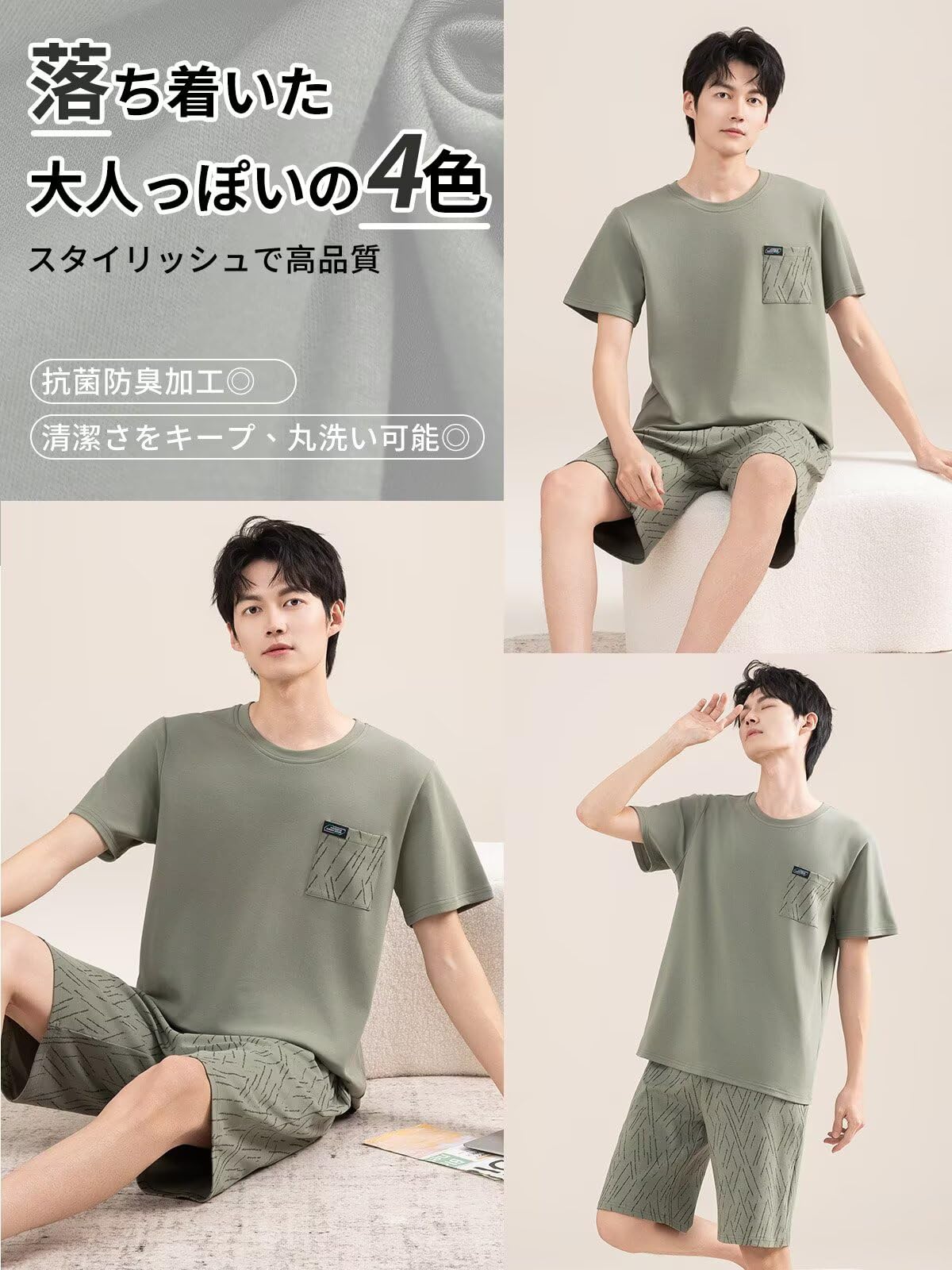 [WINROMTICO] パジャマ メンズ 夏 半袖 ルームウェア 綿 吸汗速乾 快適 薄手 柔らかい 2点セット ハーフパンツ 部屋着 大きいサイズ 旅行用 無地 質感良い 快眠