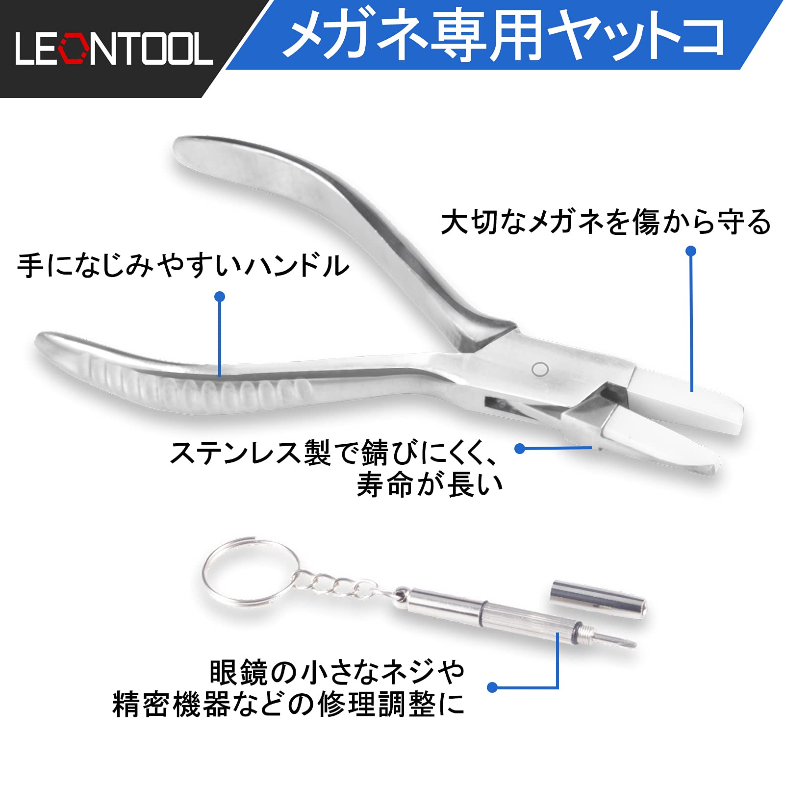 LEONTOOL テンプル用ヤットコ ドライバー付属 メガネ専用 フレーム固定 150mm 眼鏡アジャストプライヤー メガネの加工 修理 工具 メンテナンス用 眼鏡屋用 プロツール 作業道具 初心者も使用可能