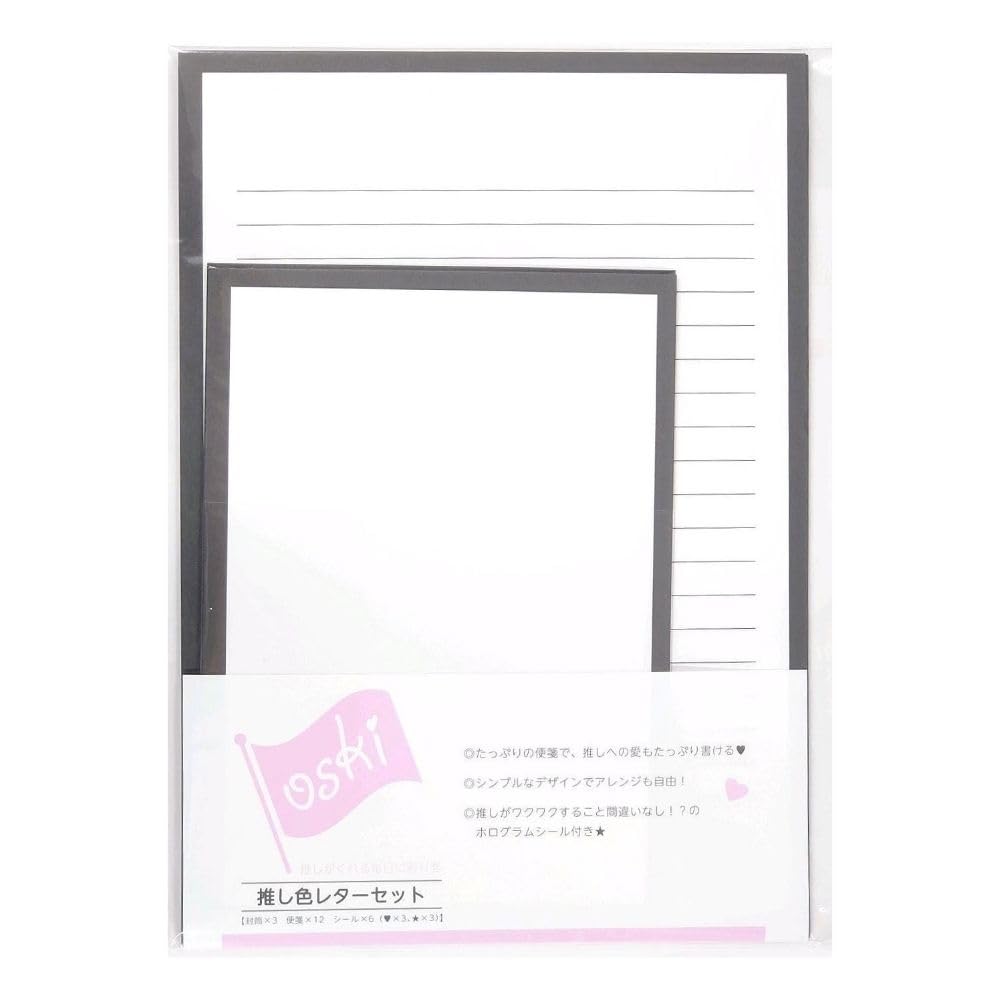 ハゴロモ 推し色レターセット 黒 No.82149 人気 シンプル かわいい ファンレター ブラック 封筒 洋2サイズ 便箋 A5サイズ シール付き