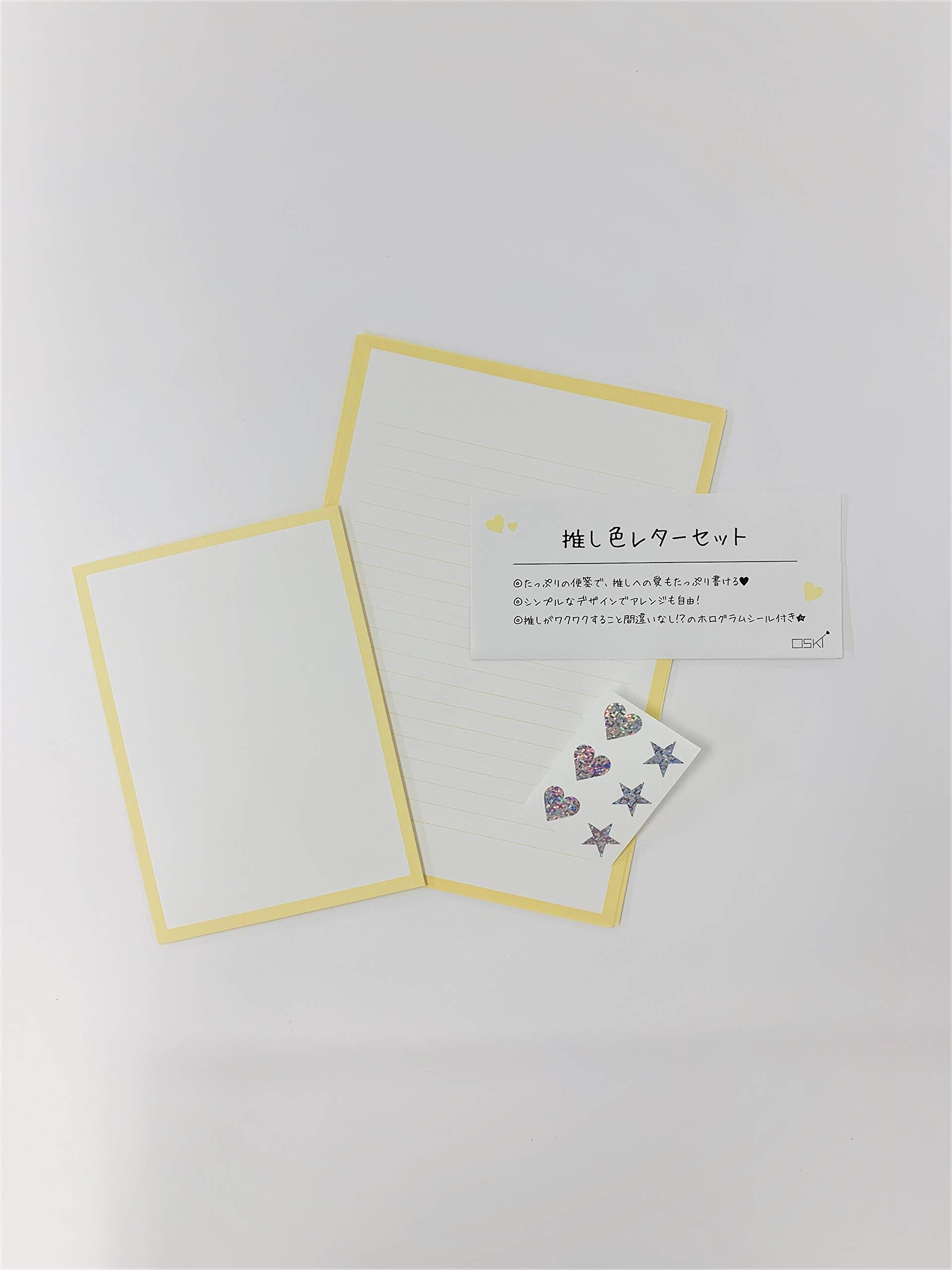 ファンレターを書くのにぴったりな商品です。推し色を添えて想いを綴ることが出来るレターセット。