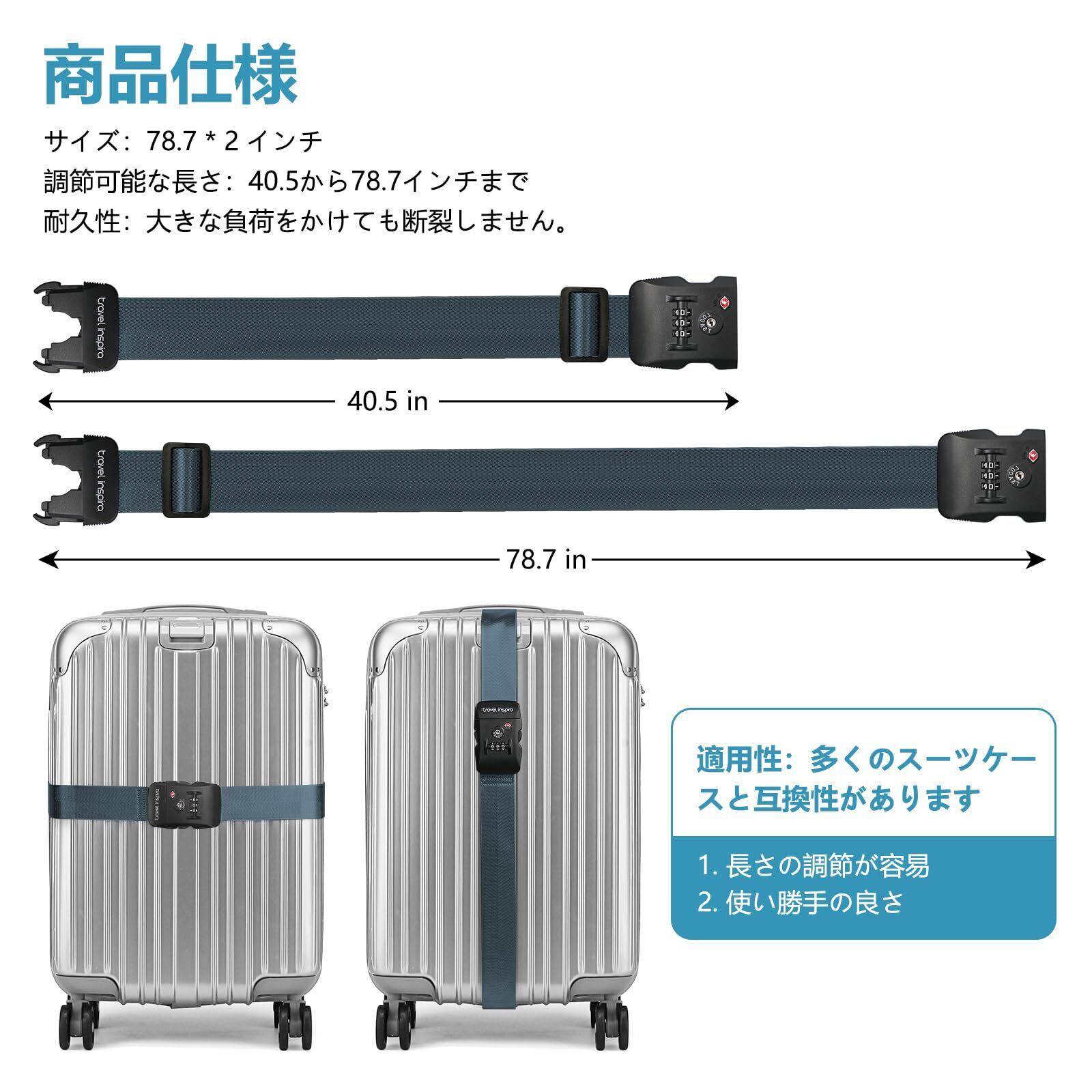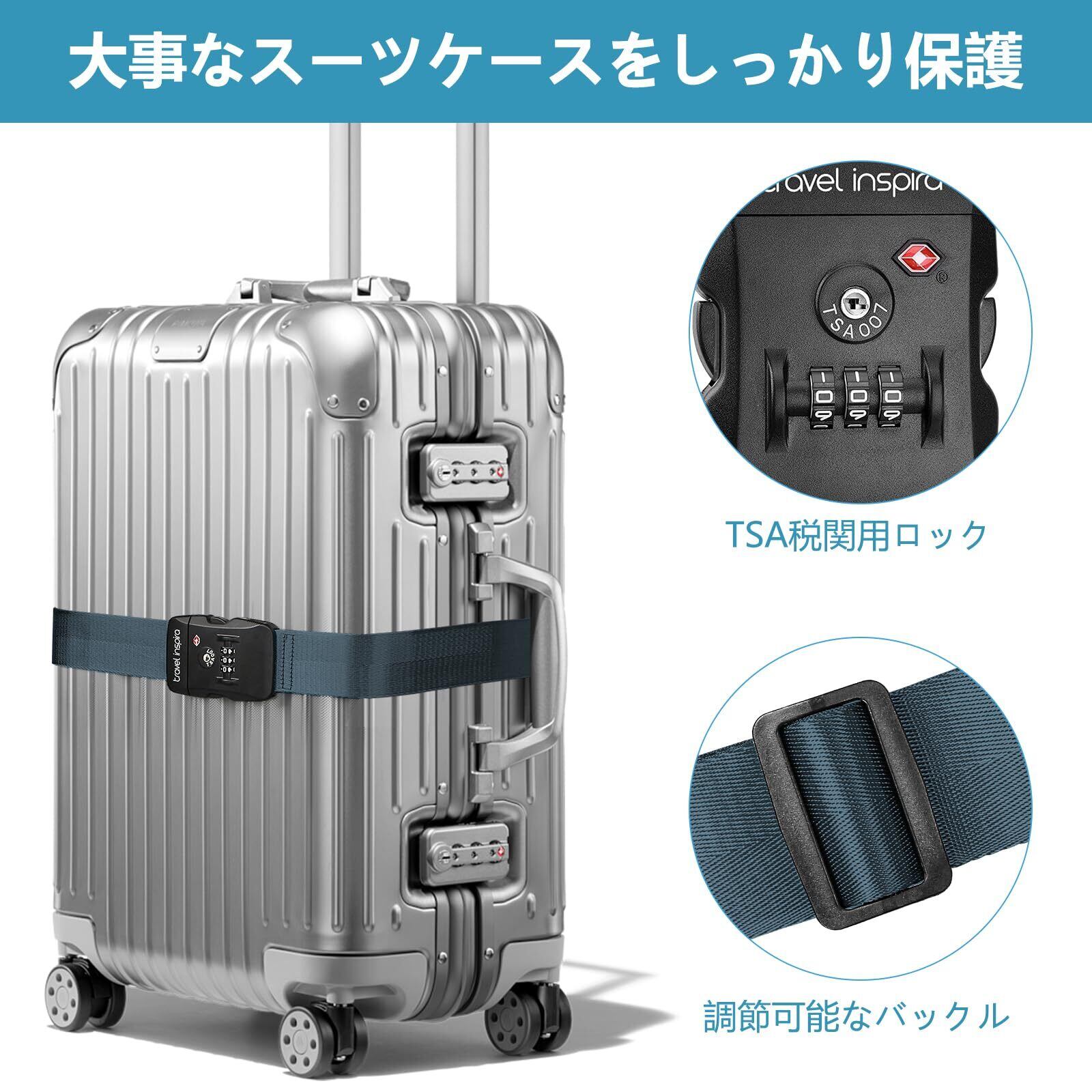travel inspira 【TSAロック】スーツケースベルト 旅行 便利グッズ 荷締めベルト バンド 荷崩れ防止・102-200 CM 調整可能 I字型 軽量 3桁ダイヤル式 固定ベルト スーツケースベルト 鍵付き ずり落ち防止 旅行/出張に最適 (ネービー)