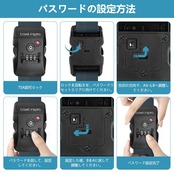 「TSA認証ロック」:TSA職員が手荷物をチェックする際、ロックを壊すことなく中身を確認できるので安心。旅行のセキュリティを強化します。