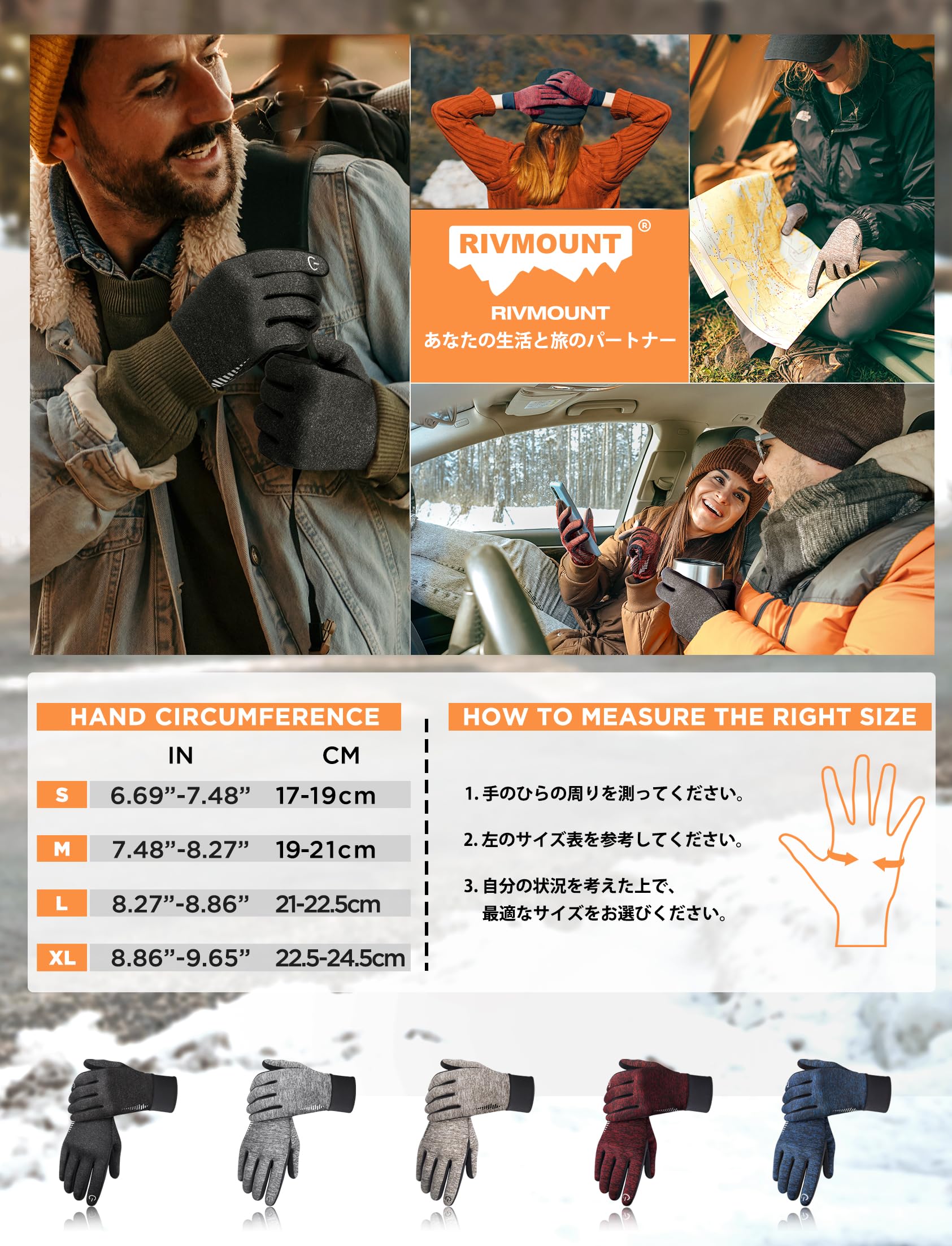 RIVMOUNTは、お客様により良い商品品質とを提供するために、2023年新たな 防寒手袋を売り出します。RIVMOUNT防寒手袋は、内側に裏起毛デザインを採用し、手の甲には通気性と弾性が高くて柔らかいポリエステルライカ材質を採用します。整体の快適さと保温性を保ちながら、手のひらに滑り止めデザインも多様なシーンに適用できます。親指と人差し指にはタッチパネル機能を搭載して、スマホやタブレットの使用は便利です。ファッション、保温性と保護性を兼ね備え、寒い冬をより楽しむことができます。