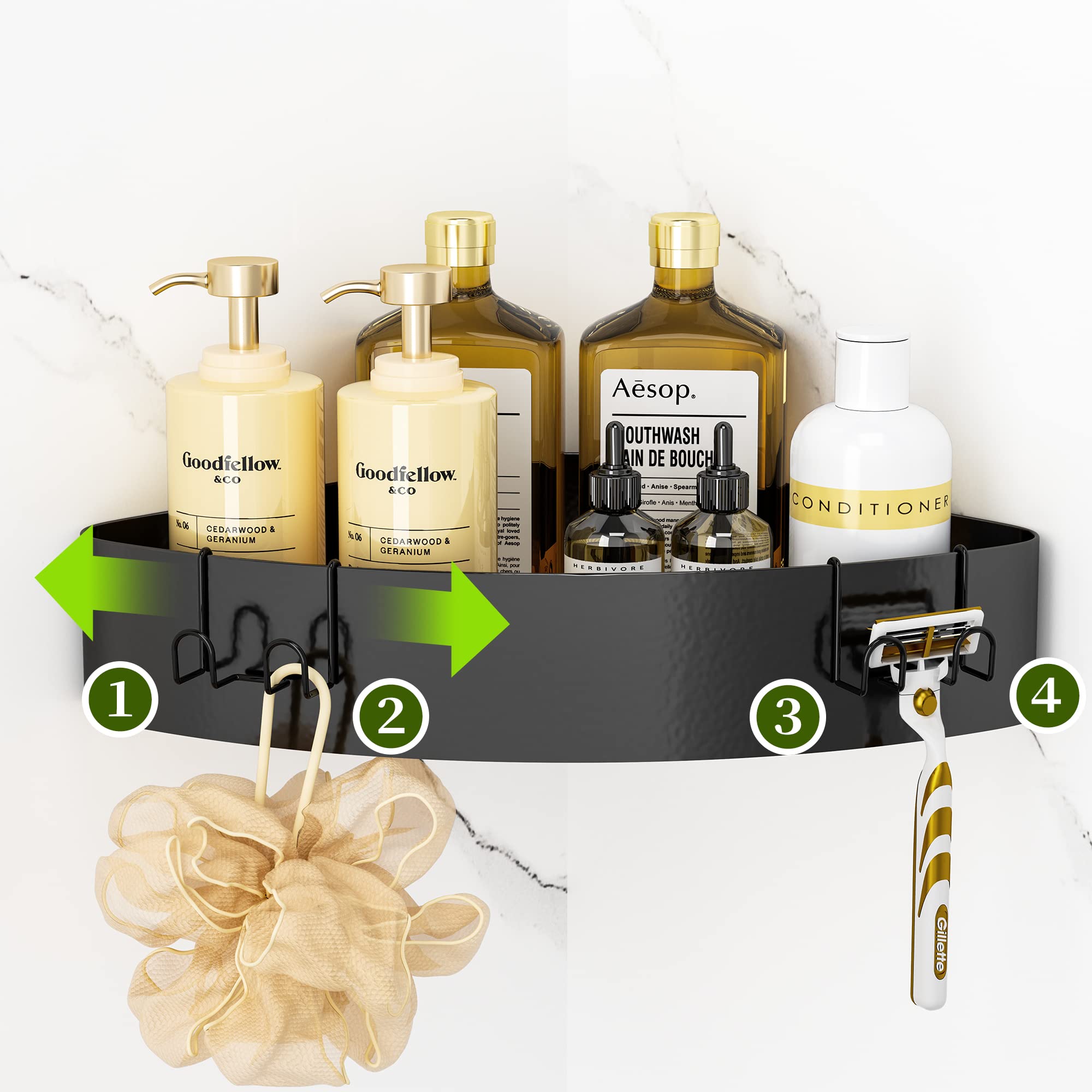 4 つのプレミアムフック:この4つのフックは、吊り物の優雅なソリューションです。彼らはあなたの意志で簡単に取り外すことができ、通常のフックよりもシャワー吊り下げアイテムを安定して直立させることができます。