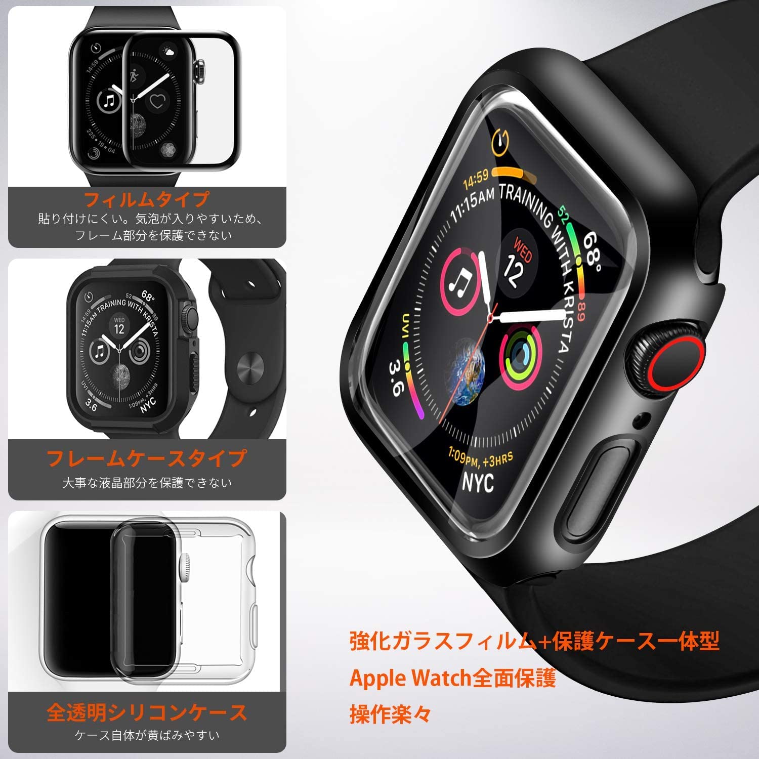 【高級感が溢れるデザイン&装着が簡単】 Apple Watchガラスフィルム+保護カバーの融合された革新的な一体型デザイン。取付け道具不要、本体の上から嵌めるだけで楽に装着できます。従来のフィルム貼りの手間も省けます。