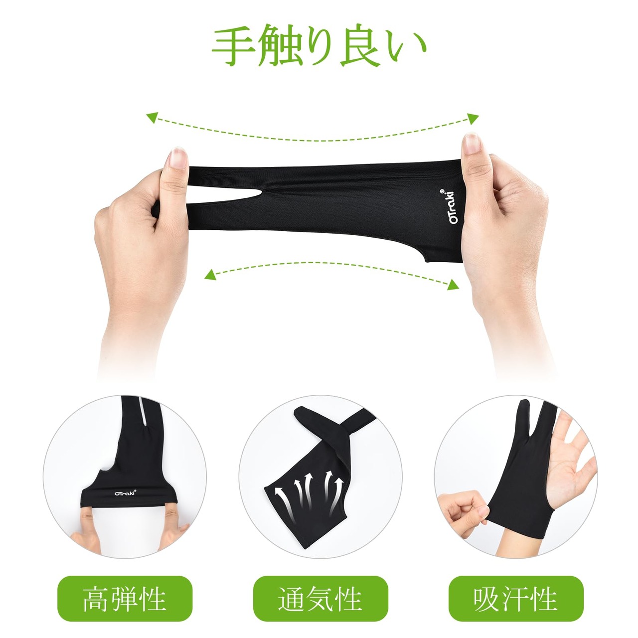 【快適使用】高品質のライクラ繊維で作成された、弾力性に優れた柔らかい生地で優れた通気性と伸縮性を備えています。柔らかい生地を採用しており、着心地も良く、圧迫感がありません。高級感ある黒色を採用して、ペーパースケッチとモニター画面の汚れを軽減します。