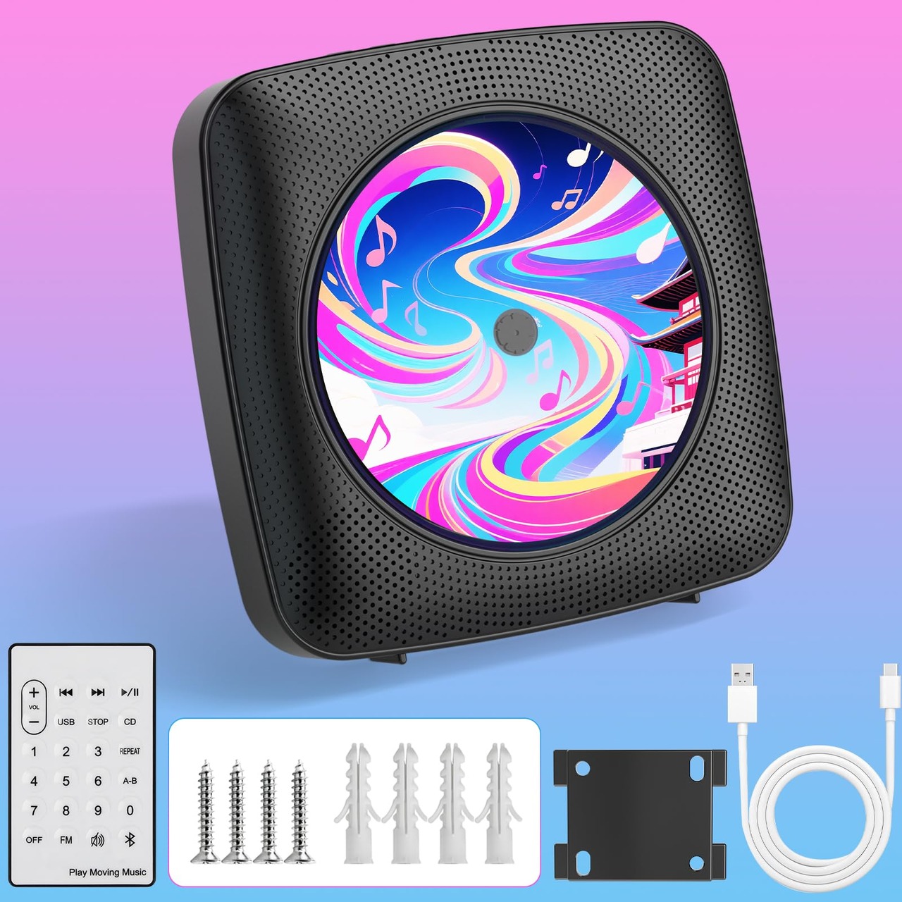 Kegaudio CDプレーヤー cdラジカセ Bluetooth 受信/送信 スピーカー内蔵 卓上&壁掛け式 CDプレイヤー 1台多役 FM/USB対応 A-Bリピート再生 音楽再生/語学学習/胎児教育 日本語説明書付き(ブラック)