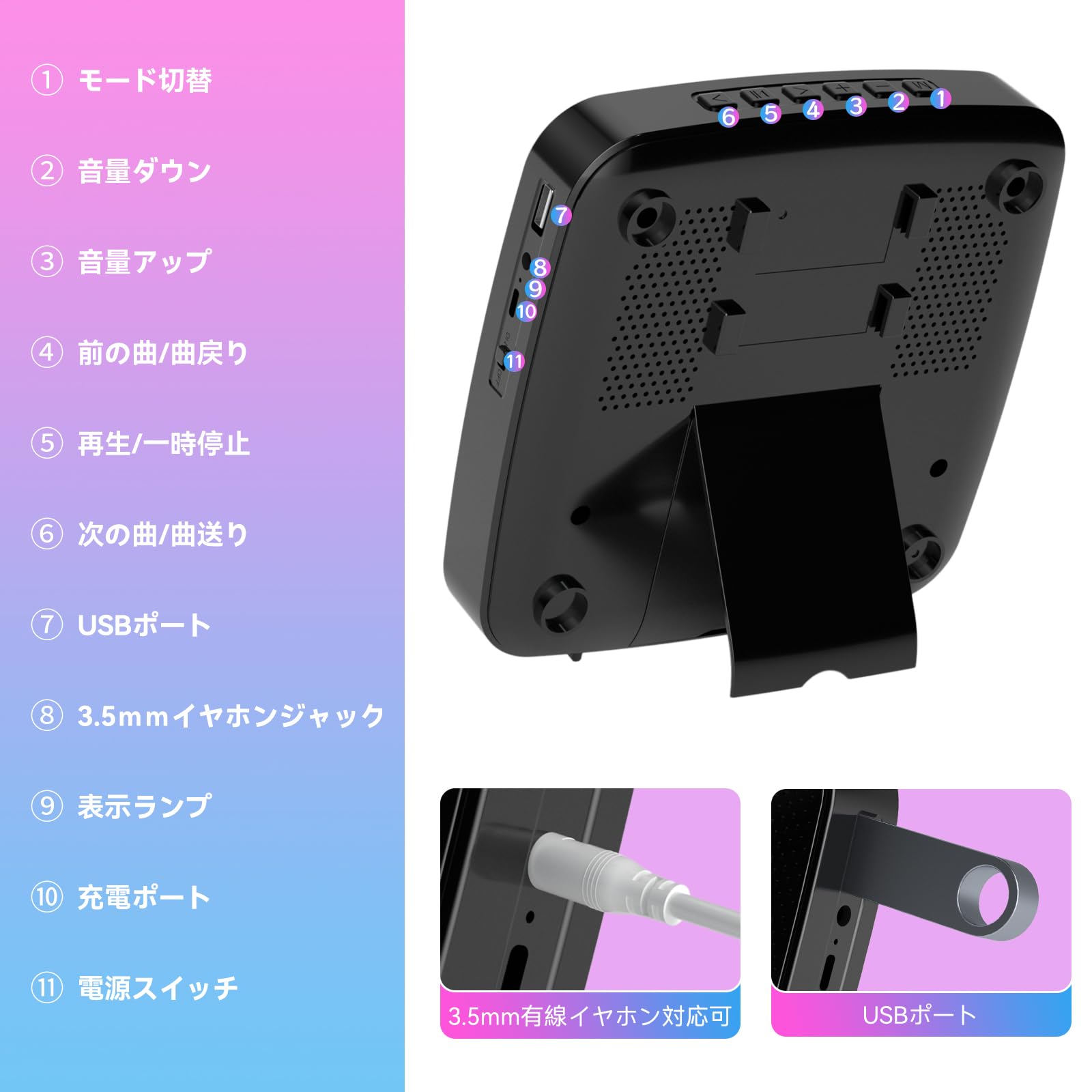 【高音質スピーカー内蔵&様々な場所に適用:】Hi-Fi高音質なスピーカー内蔵で、低音や高音でも音が割れなく日常生活に大活躍です。お宅、部屋、喫茶店、教室、レストラン、パーティー、集まり、飲み会など多くなシーンにも適用します。語学学習以外に、幼児教育と胎児教育、出産前教育、誕生祝い、結婚祝い、新築祝い、開店祝いなどの素敵な贈り物としても良い選択です。