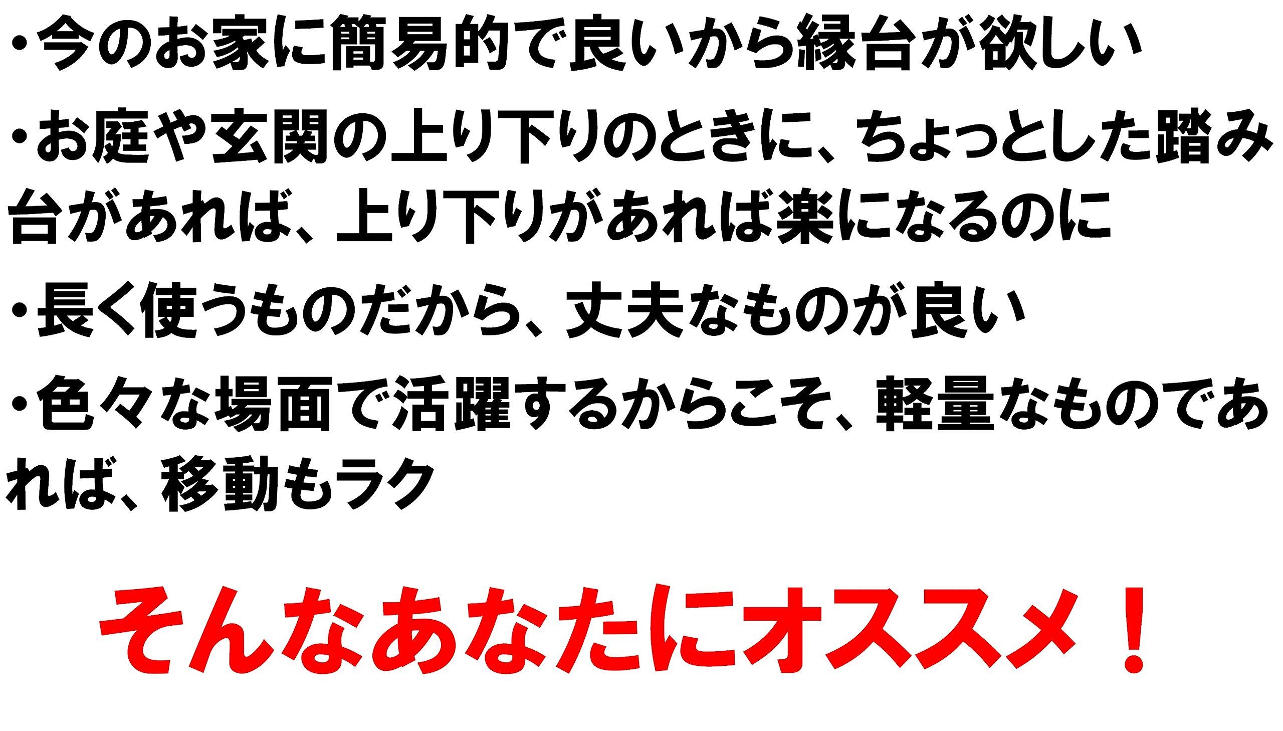 ●部屋からベランダやお庭に出る際の段差や、玄関から部屋に上がる際の段差など、ちょっとした段差にあったら嬉しいステップ