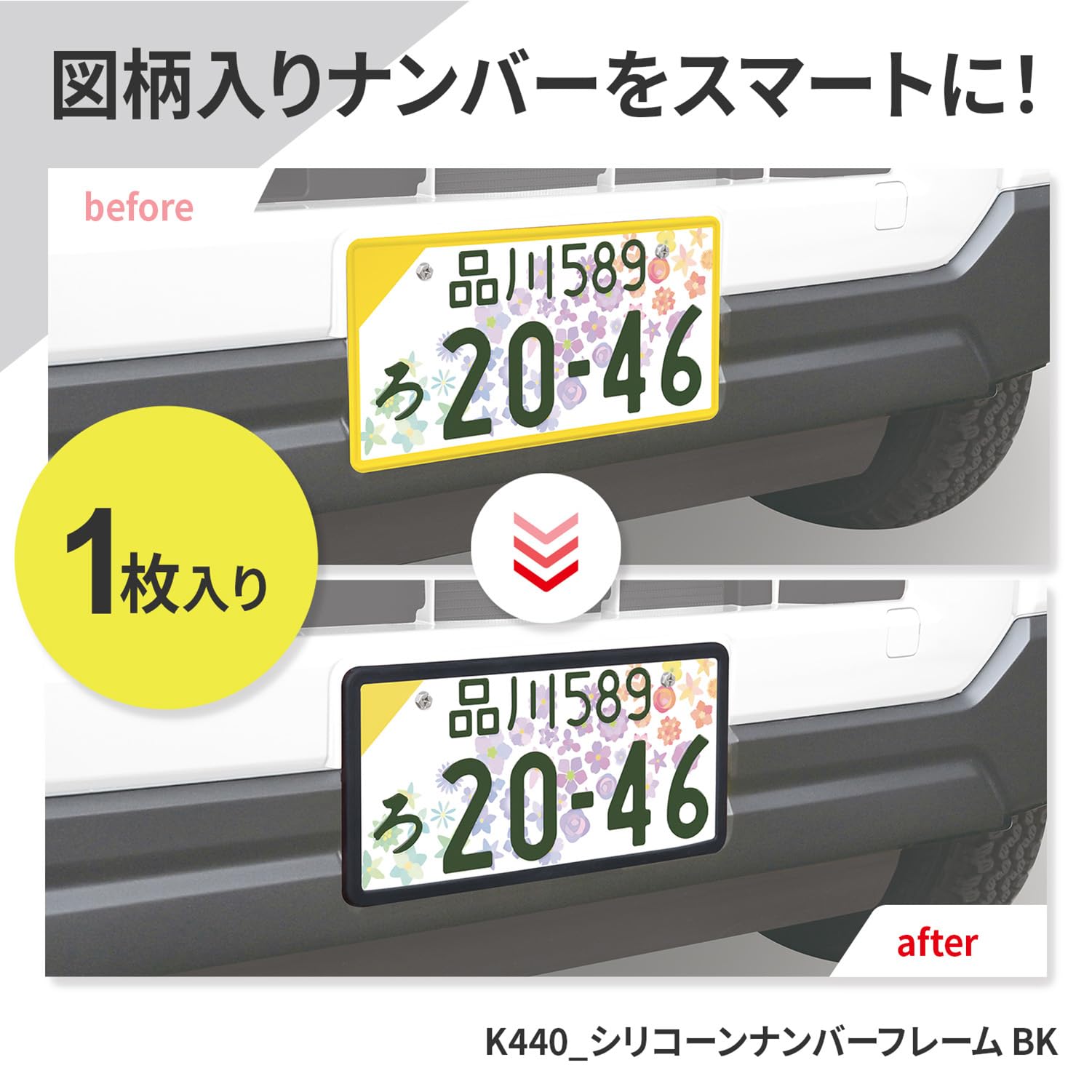セイワ(SEIWA) 車外用品 ナンバーフレーム シリコーンナンバーフレーム ブラック K440 フロント&リア対応 軽自動車 普通車対応 図柄ナンバー ご当地ナンバー 黄色枠をスッキリ見せる ドレスアップ 法規定適応品 1個入り シリコーン素材