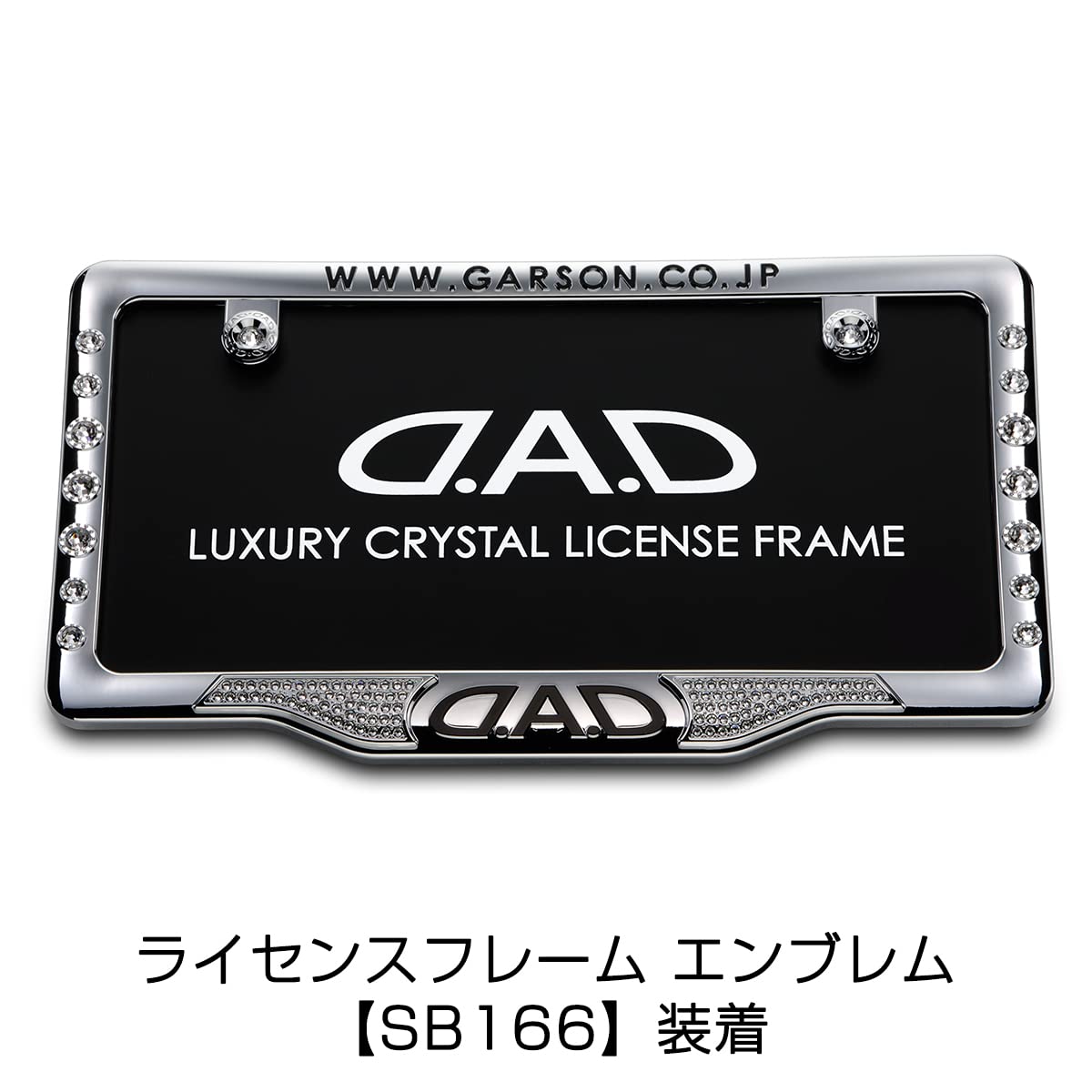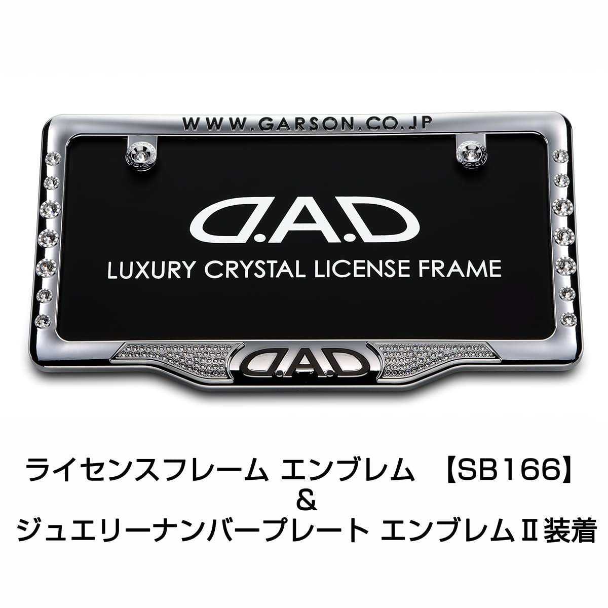 【 別売オプション品 】 スワロフスキー・クリスタルが煌びやかに光り輝く、別売「ジュエリー ナンバープレート エンブレム」と「ライセンスフレームエンブレム」を組み合わせることで、ナンバープレート周りがより一層、美しく演出させることが可能。