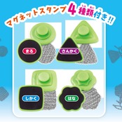 [セット内容]本体1個・おえかきペン1本・マグネットスタンプ4個(まる型・しかく型・さんかく型・お花型)