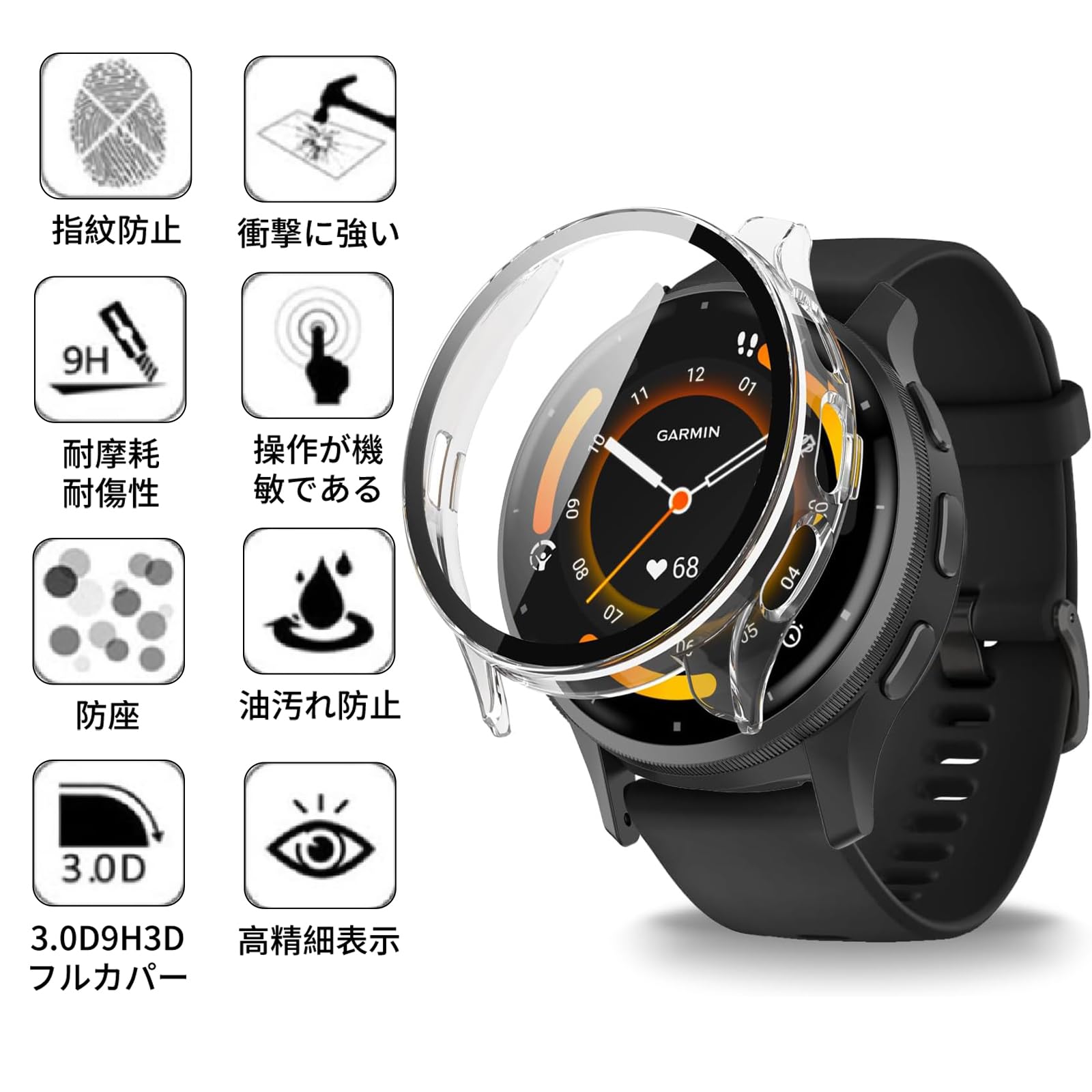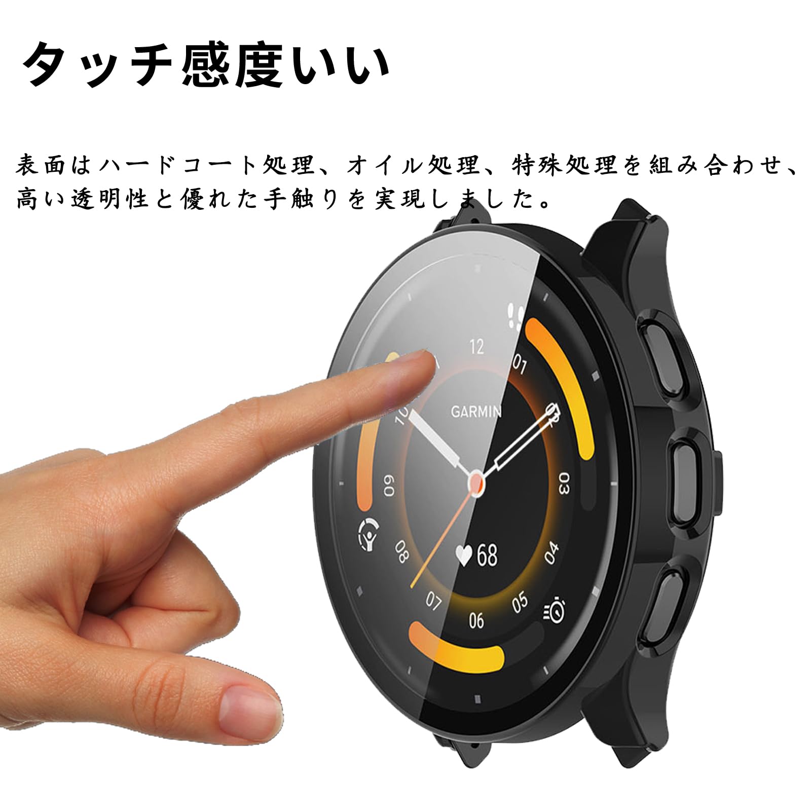 高感度タッチセンサー:高透明度の日本製ガラス+厚さ約1.3mm、重さ2.13gの極薄軽量なPC枠+GARMIN(ガーミン) Venu 3に基づいての革新な一体感設計、バンド部分との干渉もなく、保護ケースを装着したまま充電出来とても便利です。