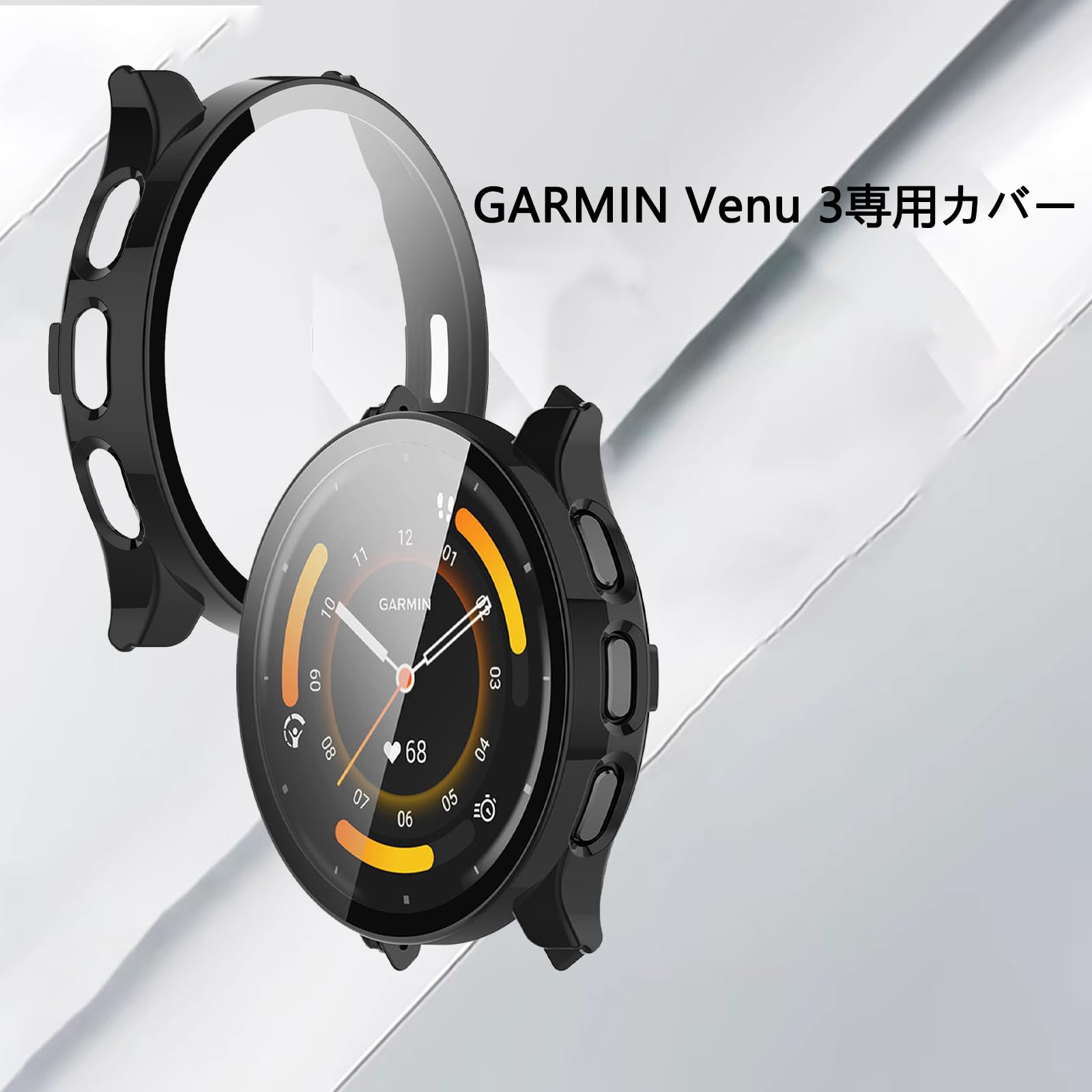 【在庫セール】YAODLE For GARMIN Venu 3 カバー ガーミン Venu 3 ケース PC素材 ガーミン Venu 3 カバー ガラスフィルム一体型 全面保護 二重構造 防塵 日本旭硝子材 キズ防止 軽量(ブラック)