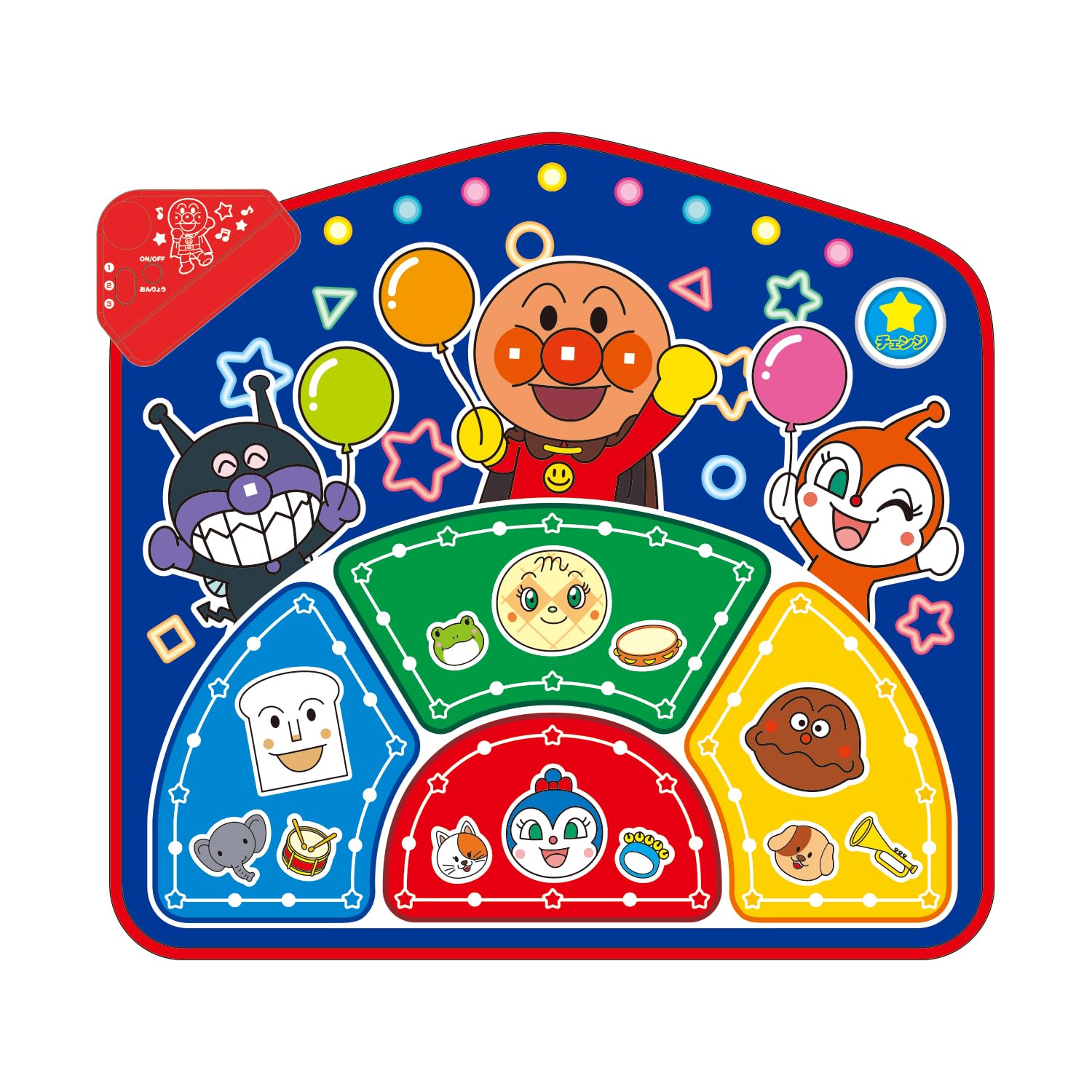 アンパンマンや人気のなかまたちの声や楽器の音、動物の声が収録され、色々な音に合わせて楽しく遊べます。