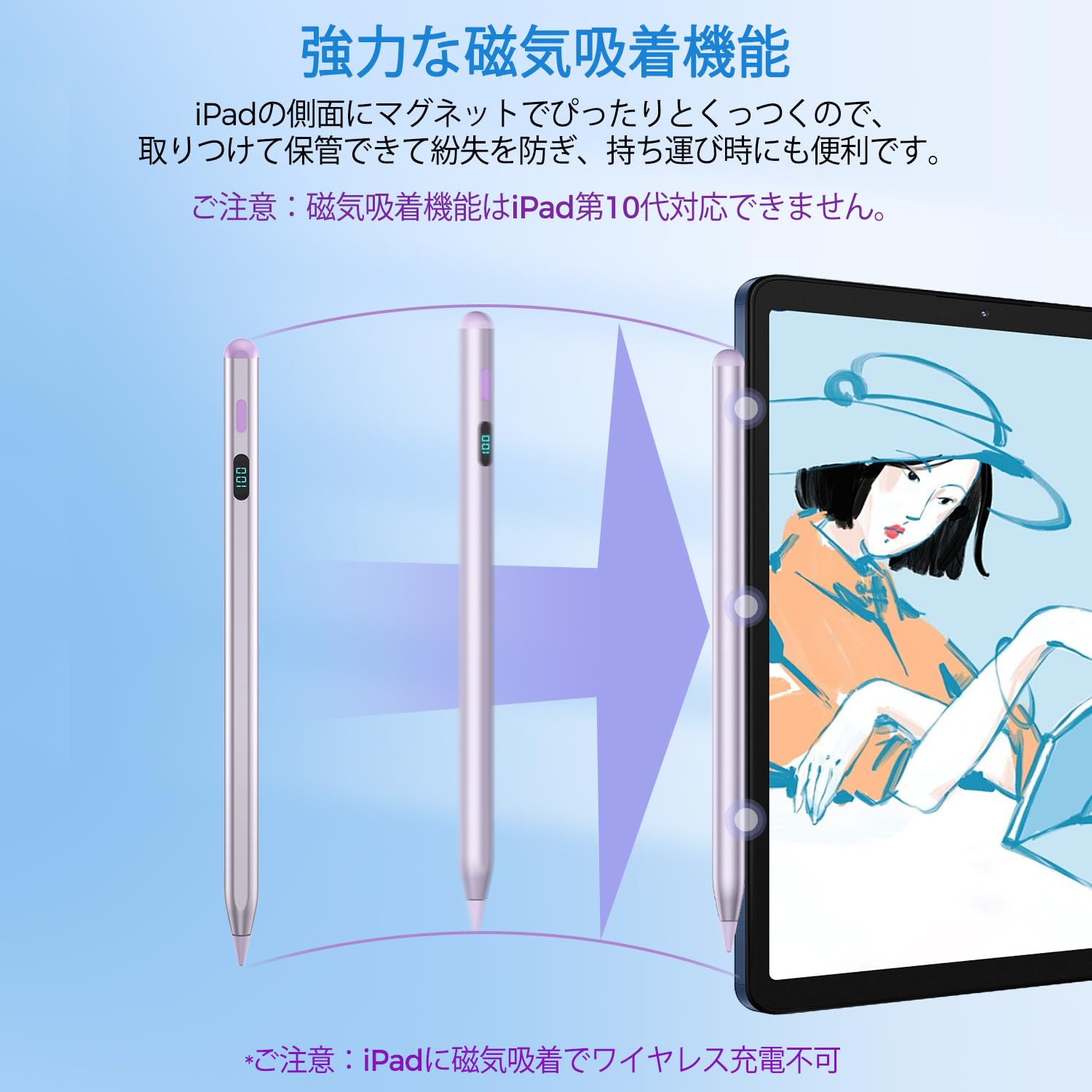 【数量限定】iPadペンシル【交換用ペン先5本付き】USB-C急速充電タッチペン 磁気吸着 iPad6-11(A16)世代Mini5-7(A17Pro)世代Air/M3/M2/11&13インチiPad Pro/M4/13&12.9&11インチ対応スタイラスペン (パープル)