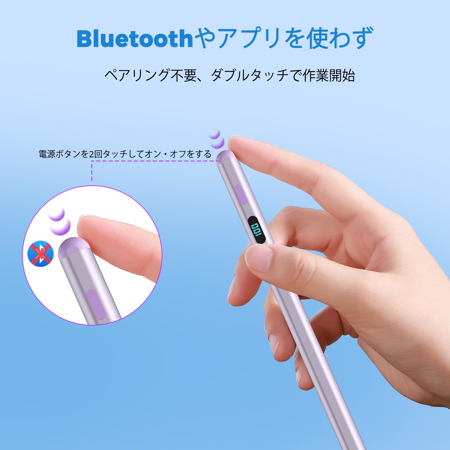 【バッテリー残量表示デジタルペンシル】LEDスクリンに数字でバッテリー残量が正確に表示されます。残量が細かくわかりやすくて、いざ使いたいときにすぐ切れてしまったという事態を避けるiPadタッチペン。