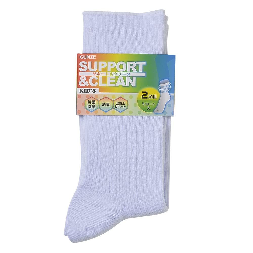 [グンゼ] 靴下 ソックス KIDS キッズ 子供 男の子 女の子 学校 スクール 綿混 快適フィット サポート 白リブ 2足組