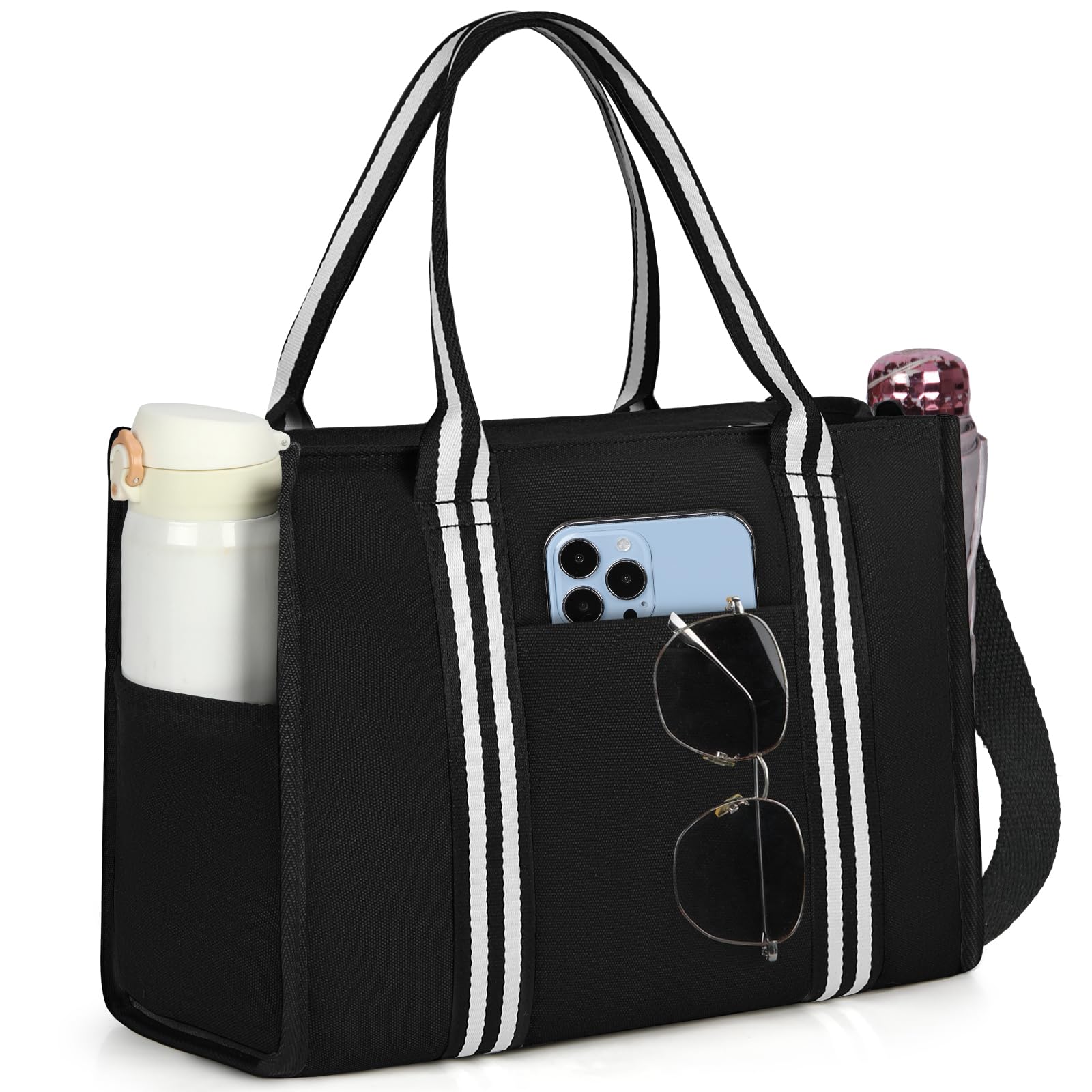 【特価セール】[RAINSMORE] トートバッグ レディース キャンバス 自立 ショルダーバッグ 撥水加工 A4収納 ハンドバッグ メンズ ファスナー付き 軽量 通勤 通学 ブラック グレー