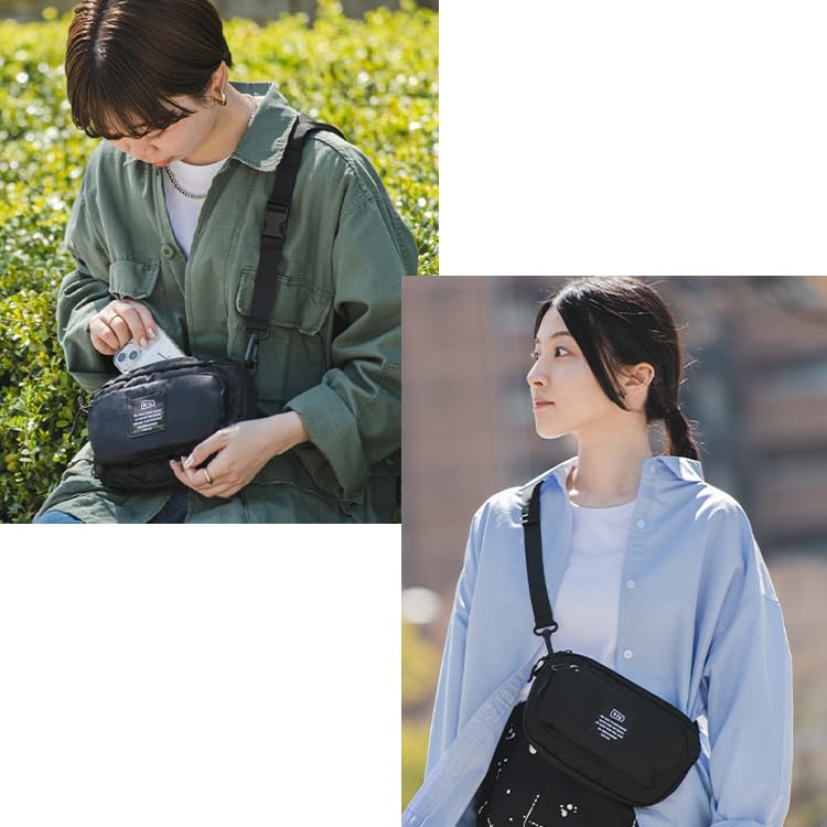 耐久性に優れた300D生地を使用したコンパクトなショルダーバッグ。