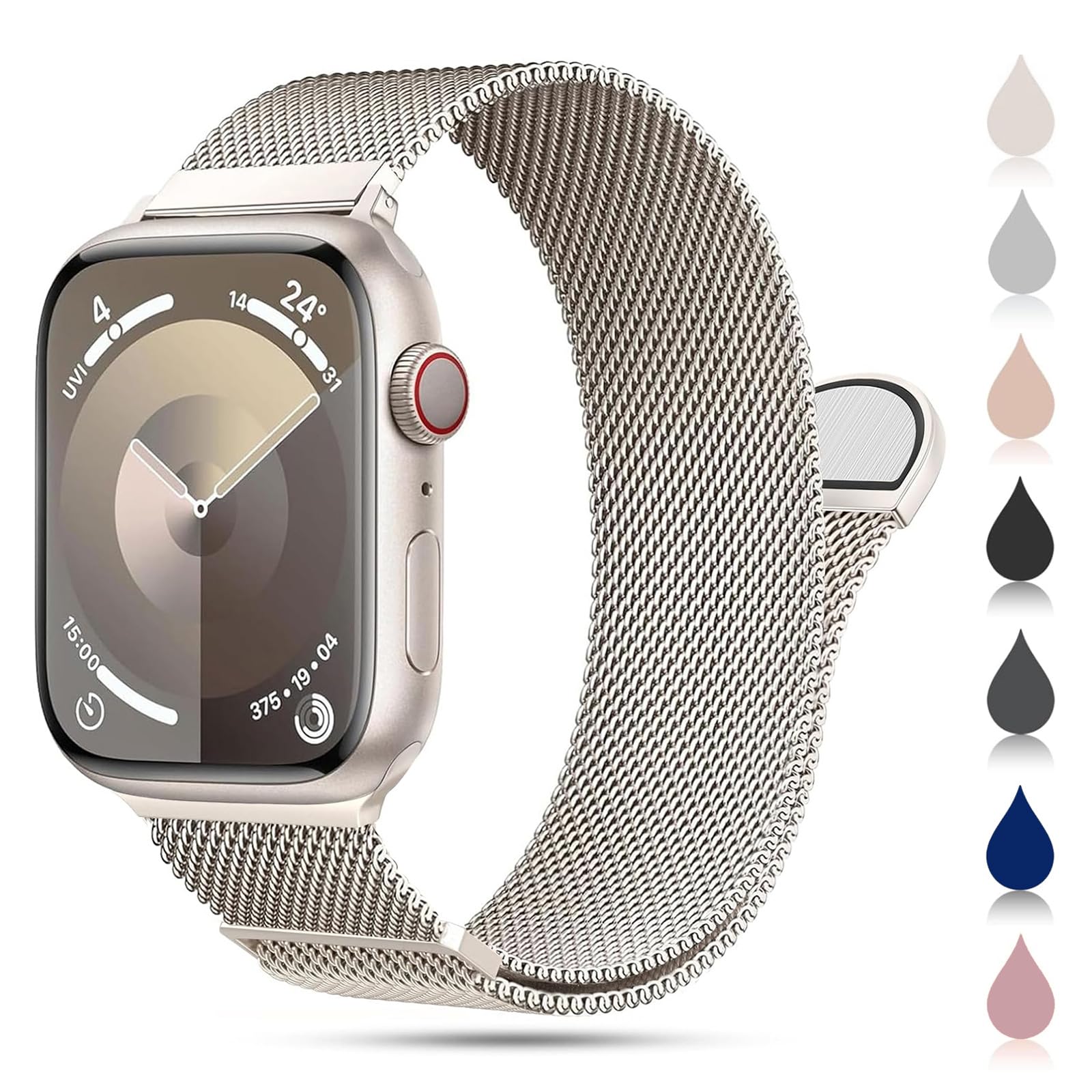 CAERMA コンパチブル アップルウォッチ バンド 38mm 40mm 41mm 42mm 44mm 45mm 46mm 49mm コンパチブル Apple Watch バンド ステンレス留め金製 男女兼用 長さ調節 強力な磁 通気 メッシュ ベルト コンパチブル Apple Watch Series 10/9/8/7/6/5/4/3/2/1/SE/Ultra 対応(49/46/45/44/42mm(Series 3) スターライト)