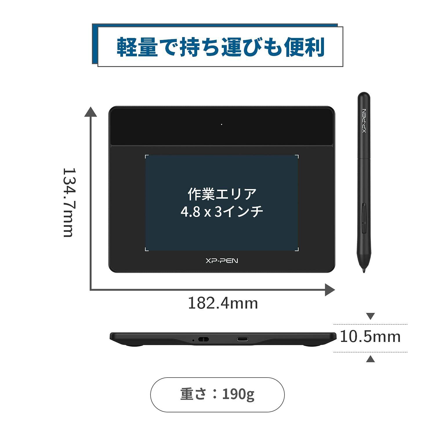 XPPen ペンタブ 4.8×3インチ 板タブ スマホ対応 充電不要ペン イラスト 入門用 OSU!ゲーム用 Windows Mac Chromebook Androidに対応 Deco Fun XS ブラック