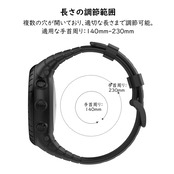 手首のサイズは 5.51インチ(140mm)-9.06インチ(230mm)が調整できます。