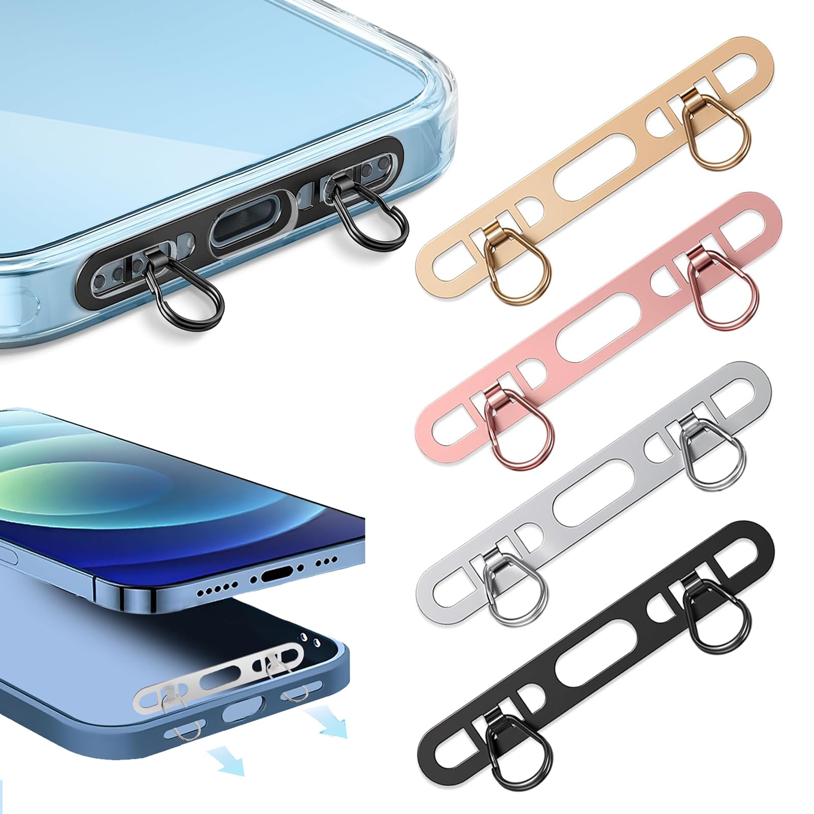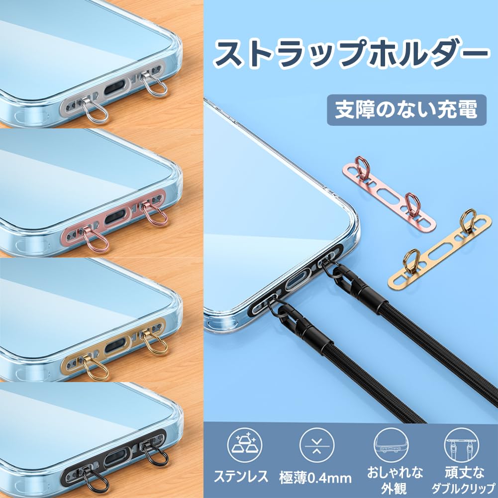 スマホストラップホルダー 4色セット iPhone 専用2点吊り ストラップホルダー 極薄0.4mm ステンレス製 携帯ストラップホルダー ショルダーストラップ 充電影響なし 落下紛失防止 iPhone 全機種対応